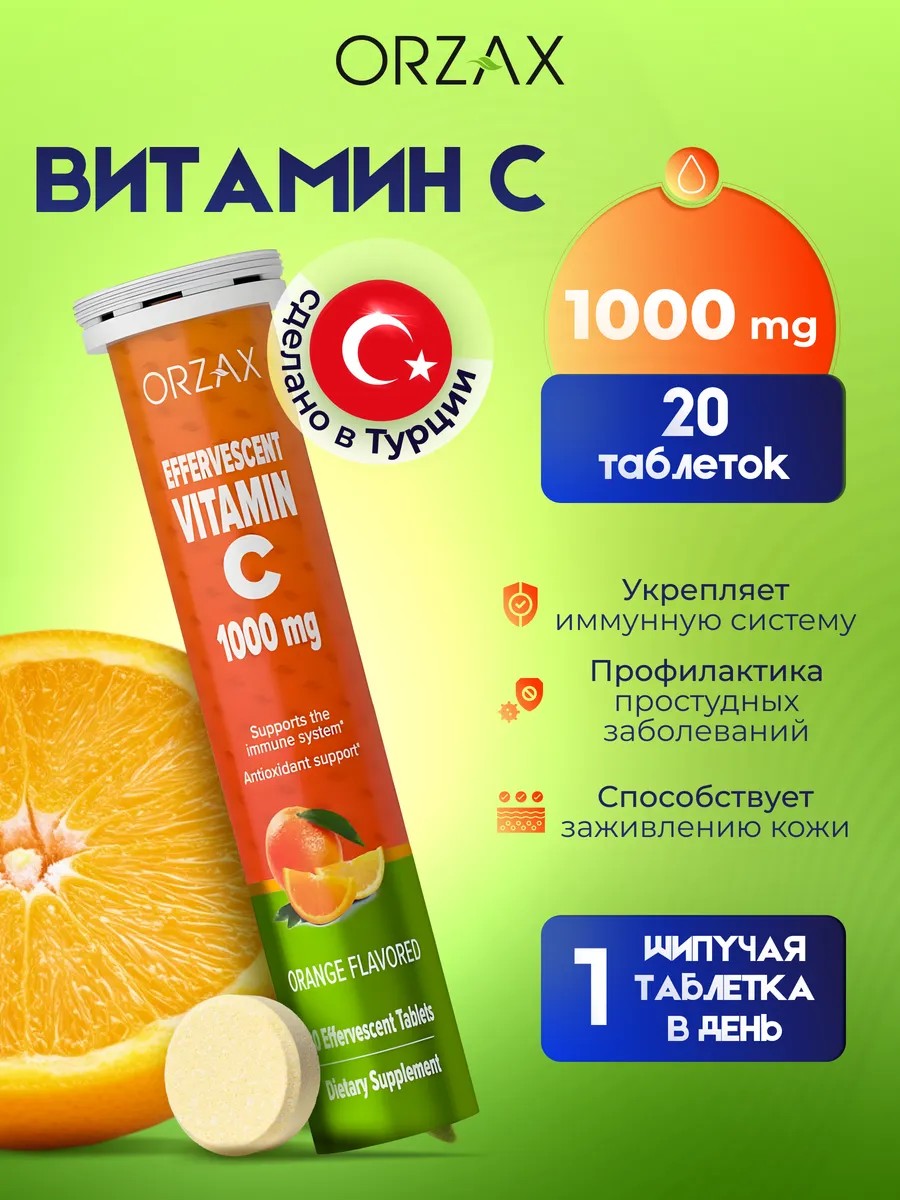 Orzax Витамин С шипучие растворимые таблетки 1000мг