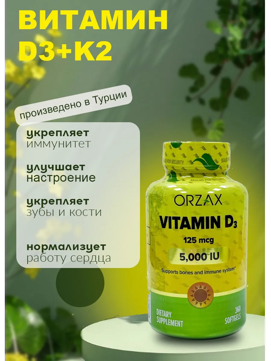 Витамин D3 от Orzax, это прекрасный выбор для тех, кто желает поддерживать свое здоровье и состояние на высоком уровне. Турецкий бренд Orzax за 17 лет успешной работы на рынке зарекомендовал себя как надежный и добросовестный производитель. Бренд изготавливает только высококачественные продукты, которые отвечают самым высоким стандартам качества. Вся выпускаемая продукция является кошерной и халяльной, проходит 3-этапный контроль качества и соответствует стандартами WHO, GMP, FDA, ISO, IFOS и GOED. Витамин д3 один из наиболее важных витаминов для нашего здоровья. Он играет ключевую роль в поддержке иммунной системы и усвоении кальция, укреплении костей и зубов, улучшении настроения и памяти, а также в улучшении состояния волос, кожи и лица. Бад ocean д 3 также помогает против выпадения волос и в борьбе с депрессией, улучшает работу сердечно сосудистой системы и повышает иммунитет. Витамин д 5000ед отлично подходит для людей любого возраста и образа жизни.