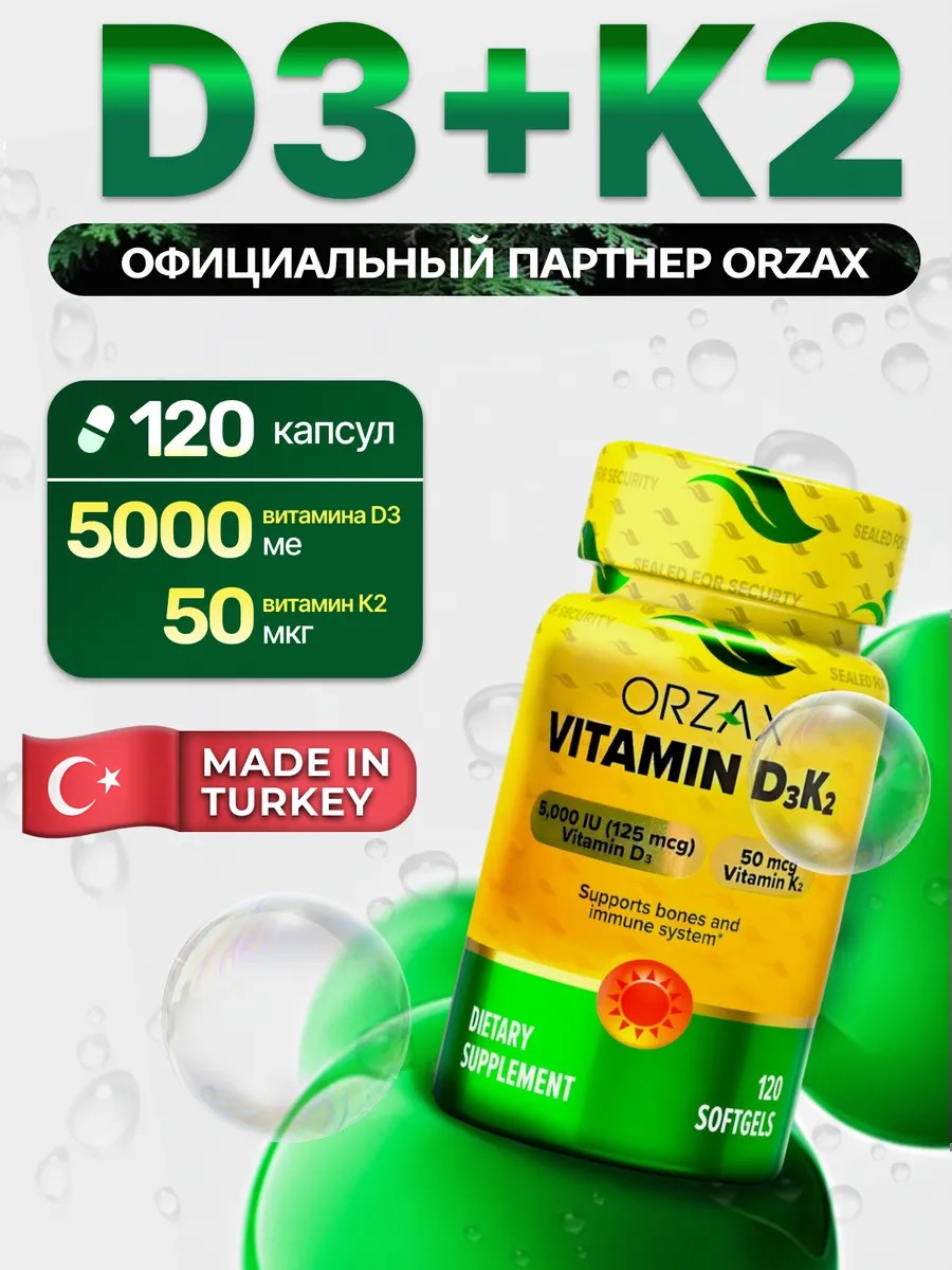 Orzax Витамин д3 к2 5000 Турция, d3 k2