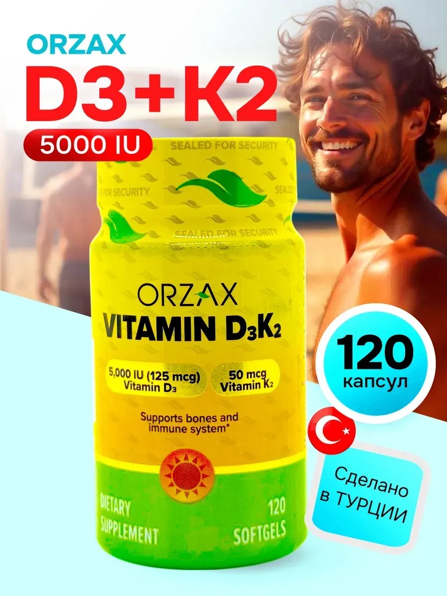 Vitamin D3 and K2 5000 IU (cholecalciferol) from ORZAX is a powerful complex for bone health, immunity, and overall well-being.