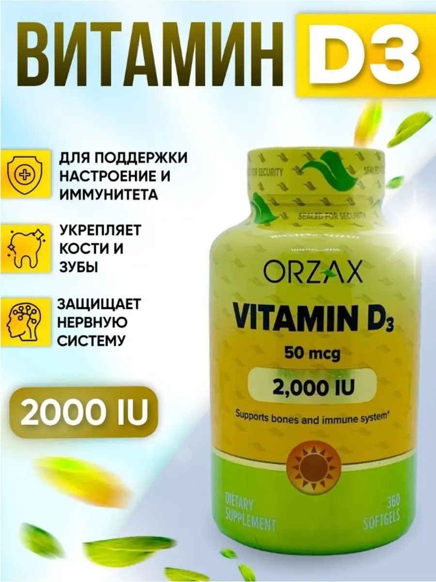 Orzax Витамин D3 МЕ - 360 капсул для иммунитета
