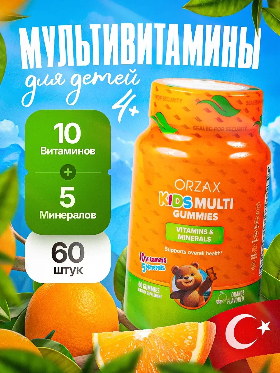 Kids Multi Gummies vitamins for children from the Turkish brand ORZAX are delicious chewable gummies containing 10 vitamins and 4 minerals essential for the normal growth and development of children.