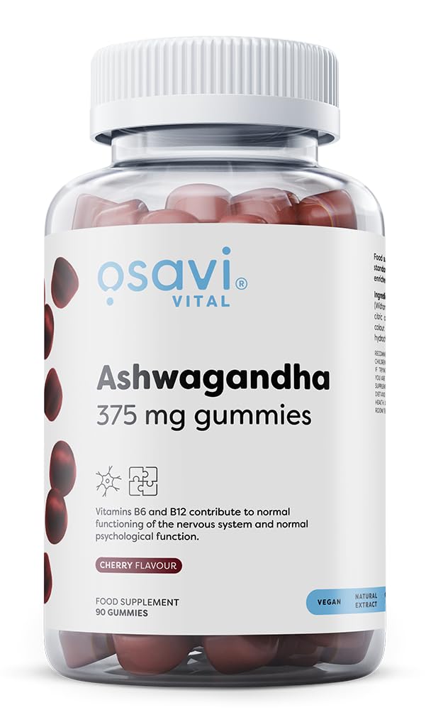 Quality from the EU: made under controlled conditions with selected raw materials and without artificial additives. 90 pieces for 1 to 3 months: depending on the use of individual supplies, perfectly doseable according to personal needs. Tasty cherry flavour: pleasantly fruity and easy to chew - a pleasant alternative to capsules. For more balance: designed to support balance and inner peace in stressful phases of life. 375 mg ashwagandha per serving of gummy bears: tasty plant power in a practical rubber form – ideal for daily use.Osavi Ashwagandha 375mg Gummies, Cherry - 90 gummiesKwaliteit uit de EU: gemaakt onder gecontroleerde omstandigheden met geselecteerde grondstoffen en zonder kunstmatige additieven. 90 stuks voor 1 tot 3 maanden: afhankelijk van het gebruik van individuele voorraad, perfect doseerbaar naar persoonlijke behoefte. Lekkere kersensmaak: aangenaam fruitig en gemakkelijk te kauwen - een aangenaam alternatief voor capsules. Voor meer balans: ontworpen ter ondersteuning van balans en innerlijke rust in stressvolle levensfasen. 375 mg ashwagandha per portie gummibeertjes: lekkere plantenkracht in praktische rubberen vorm – ideaal voor dagelijks gebruik.