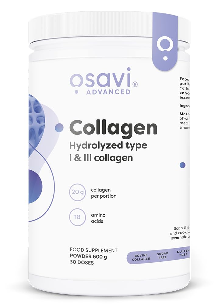Made in the EU: produced to strict standards, transparent listing and tested ingredients. Highly bioavailable peptides: optimally released by hydrolysis – for efficient absorption by the body. Versatile: can be easily integrated into water, shakes or dishes - flexible in everyday life and training routine. Additive-free and tasteless: free from aromas, sweeteners or colorings – ideal for individual combinations. Hydrolyzed collagen types I III: pure bovine collagen for targeted support of diet and exercise.Osavi Collagen Peptides - Hydrolyzed Type 1 3-600gGemaakt in de EU: geproduceerd volgens strenge normen, transparante vermelding en geteste ingrediënten. Zeer biologisch beschikbare peptiden: door hydrolyse optimaal ontgrendeld – voor een efficiënte opname door het lichaam. Veelzijdig inzetbaar: kan eenvoudig in water, shakes of gerechten worden geïntegreerd – flexibel in het dagelijks leven en trainingsroutine. Zonder additieven en smaakneutraal: vrij van aroma's, zoetstoffen of kleurstoffen – ideaal voor individuele combinaties. Gehydrolyseerd collageen type I III: zuiver rundercollageen voor gerichte ondersteuning van voeding en lichaamsbeweging.