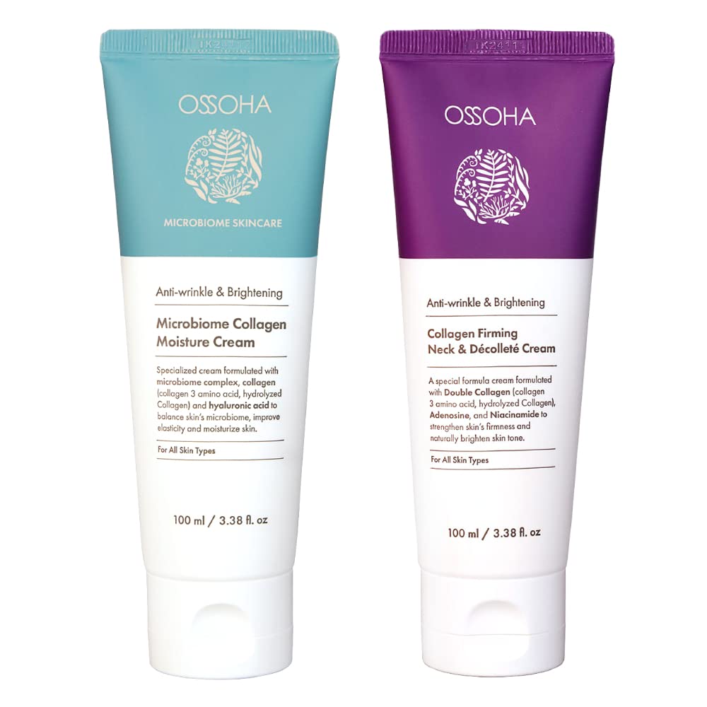 OSSOHA SET Collagen Firming Neck & D collet Cream(100ml/3.38fl.oz)+Microbiome Collagen Moisture Cream(100ml/3.38fl.oz)_For Both Neck and Face Moisturizer For Sensitive Skins Natural Ingredients