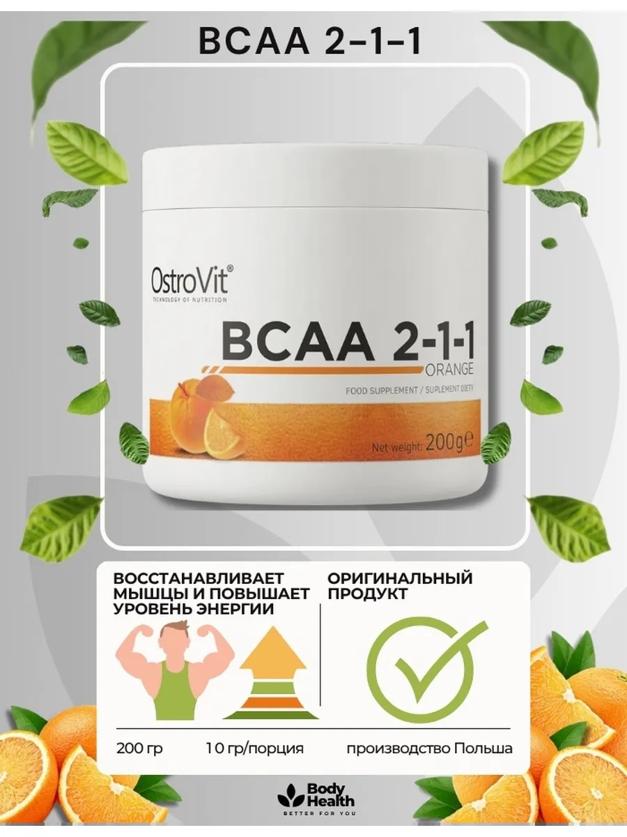 OstroVit BCAA 2-1-1 это высококачественная пищевая добавка, которая содержит аминокислоты с разветвленной цепью. Это продукт с приятным вкусом, доступный в удобной порошковой форме без добавления сахара. Это продукт, созданный как для спортсменов, так и для физически активных людей, которые хотят дополнить свой рацион ценными ингредиентами.