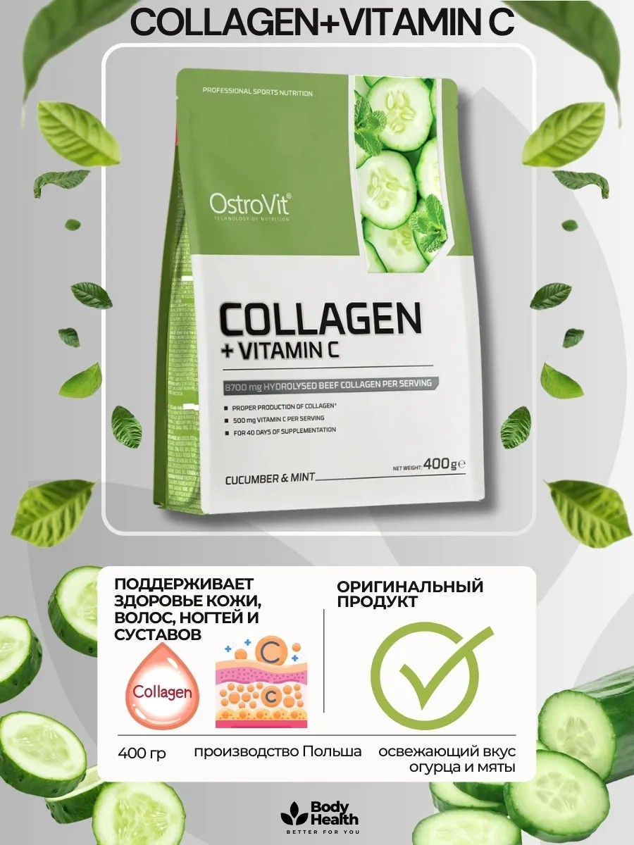 OstroVit Коллаген + Витамин C - высококачественная биологически активная добавка, которая является источником гидролизованного бычьего коллагена и ценной L-аскорбиновой кислоты. Это порошкообразный препарат, выпускаемый в нескольких вкусовых вариантах, который идеально подходит для дополнения ежедневного рациона физически активных людей и заботящихся о здоровом и красивом внешнем виде.