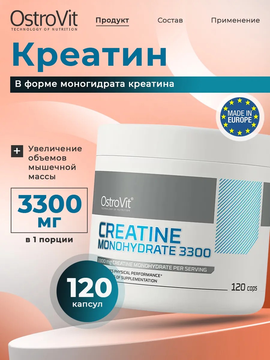 Креатин моногидрат 3300 мг 120 капсул OstroVit Creatine Monohydrate 3300 mg 120 capsules - высококачественная пищевая добавка, которая является ценным источником креатина в форме моногидрата. Она выпускается в форме легко глотаемых капсул и разработана для спортсменов и физически активных людей. Креатин моногидрат структурно является самой простой формой креатина и одновременно наиболее популярным среди спортсменов соединением - он идеально подходит как для новичков, так и для профессионалов, потому что креатин повышает физическую работоспособность при последовательных коротких и очень интенсивных физических нагрузках, а положительный эффект наступает при ежедневном потреблении 3 г креатина. Моногидрат креатина добавка к спортивному питанию (спорт пит) для достижения самых высоких результатов. Ингибирует активность протеолитических ферментов, повышает гидратацию мышечных клеток и значительно ускоряет рост мышечной массы тела. Идеально подходит как в период набора массы и силы, так и в период уменьшения жировых отложений и веса. Моногидрат креатина – это та добавка, которая действительно работает для спорта и здоровья. Его уникальные свойства позволяют увеличить силу, выносливость и мышечную masu. Креатин можно использовать как для мужчин, так и для женщин, безразлично к какому виду спорта или физической активности они причастны. Поддержка мышц и суставов - одна из главных задач данного спортивного комплекса. После тренировки больше не почувствуете никакой боли, только быстрое восстановление. Креотин – уникальный ингредиент, который поможет вам достичь наилучших результатов в спорте. Его применение способствует наращиванию мышц, увеличению силы и выносливости, что делает его незаменимым инструментом для профессиональных спортсменов. Данный продукт ОстроВит также будет полезен всем тем, кто стремится к похудению и улучшить физическую форму. Закажите этот creatin complex сейчас и начните новый этап вашего пути к здоровью и красоте вашего тела уже сегодня! Ваш тренировочный процесс будет более эффективным и приятным благодаря этому превосходному продукту.