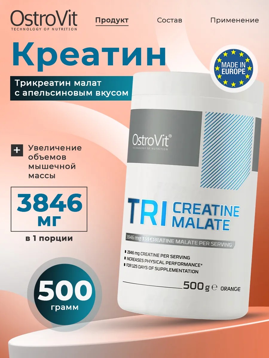 Ostrovit, Три Креатин Малат TRI Creatine Malate, банка порошок 500г, Апельсин (orange) - это высококачественная пищевая добавка, которая является источником креатина в форме малата. Это продукт с простым составом и апельсиновым вкусом, доступный в удобной порошковой форме. Продукт предназначен спортсменам и физически активным людям, желающим дополнить свой рацион ценным соединением. Креатин малат значительно меньше способствует задержке воды в организме, чем моногидрат, благодаря чему он очень популярен среди спортсменов различных дисциплин. Креатин повышает физическую работоспособность при последовательных коротких и очень интенсивных тренировках. Уникальная пищевая добавка к спортивному питанию (спорт пит) для достижения самых высоких результатов. Идеально подходит как в период набора массы и силы, так и в период уменьшения жировых отложений и веса. ПОЛЬЗА: Способствует поддержанию нормального энергетического обмена; kreatin помогает в правильном функционировании нервной системы; Способствуя снижению усталости и утомления; Влияет на увеличение силы и выносливости; Усиливает анаболические процессы; Стимулирует рост чистой мышечной массы; Защищает мышцы от катаболизма; Повышает ваши силовые возможности. Поддержка мышц и суставов - одна из главных задач данного спортивного комплекса, подходит как для мужчин, так и для женщин. Его применение способствует наращиванию мышц, что делает его незаменимым инструментом для профессиональных спортсменов. Этот стимулятор в форме порошка - идеальное правильное ПП дополнение, благодаря специальной смеси, которая содержит здоровое сочетание кретина малат, вы сможете легко набрать "правильное" количество энергии для тренировок. Эта уникальная complex formula также поможет вашему гормону power energy достичь максимальных результатов. Баночка 500г данной "формулы" позволят вам насладиться невероятным вкусом этой еды добавки. Данный продукт ОстроВит также будет полезен всем тем, кто стремится к похудению и улучшить физическую форму. Закажите этот creatin malate сейчас и начните новый этап вашего пути к здоровью и красоте вашего тела уже сегодня!