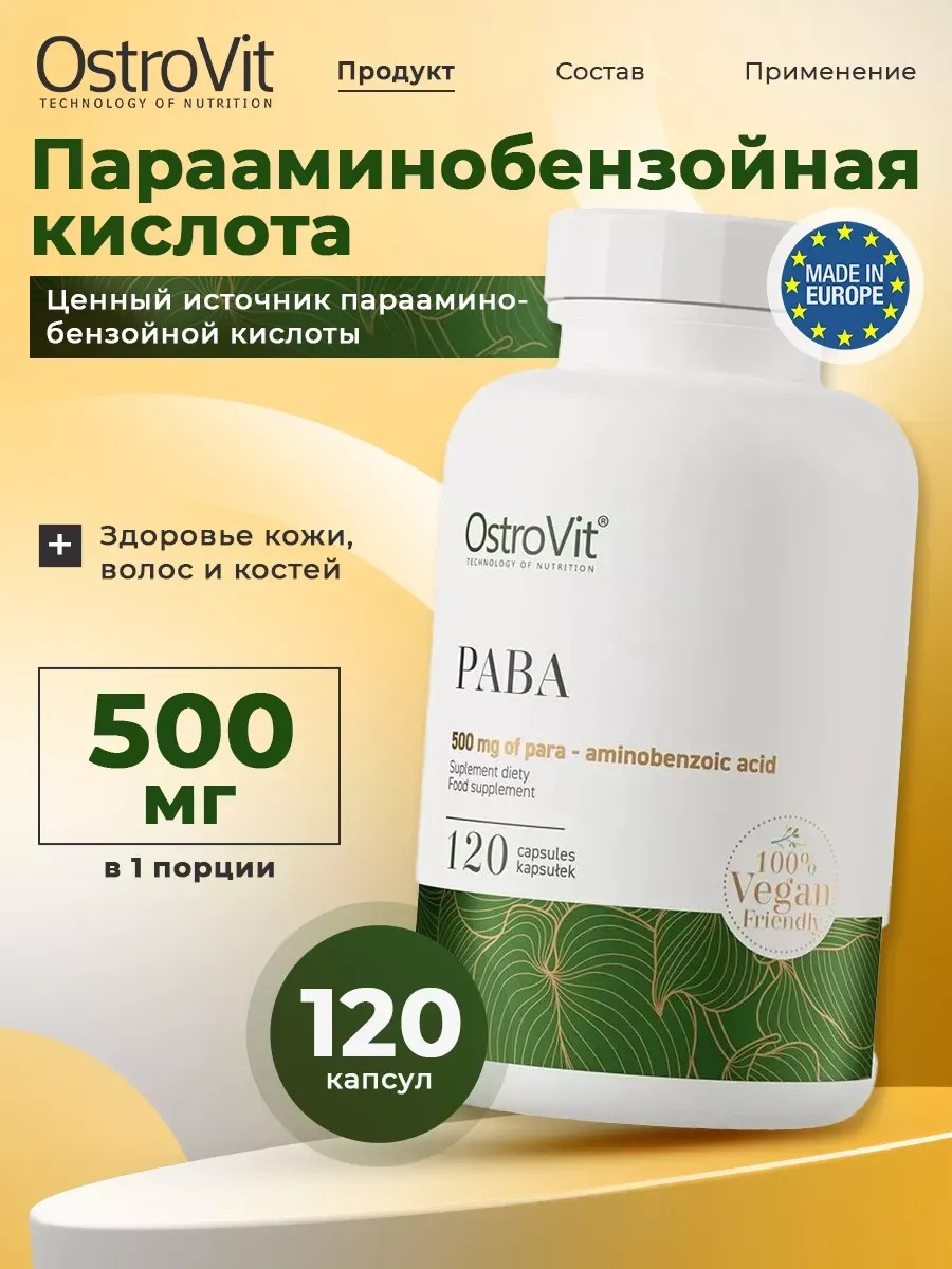 ПАБА 120 капсул Ostrovit, Paba VEGE 120 vcaps - высококачественная биологически активная добавка, которая является источником пара аминобензойной кислоты 500 мг на порцию. Это веганский препарат, выпускающийся в виде легко глотаемых капсул, предназначенный для людей, желающих дополнить свой ежедневный рацион ценным соединением. Парааминобензойная кислота, известная также, как витамин В10 (vitamin B10) - это витамин группы B, который способствует синтезу фолиевой кислоты, стимуляции обмена веществ, защите от ультрафиолетовых лучей. Этот микроэлемент содержится в традиционных продуктах питания, таких как мясо, яйца, молоко, зерновые и т.д. Польза: рава оказывает мощную антиоксидантную защиту; благотворно влияет на состояние кожи, волос и ногтей; замедляет процессы старения; препятствует образованию морщин; улучшает работу щитовидной железы (щитовидки); участвует в метаболизме белка, что крайне важно для спортсменов, чья диета включает приём большого объёма протеина; усиливает производство витамина В9, который необходим для здорового роста клеток и тканей, в том числе и мышечной; увеличивает синтез красных кровяных клеток, обеспечивающих транспорт кислорода в организме; предотвращает развитие чрезмерной физической утомляемости; снижает чувствительность кожи к ожогам и ультрафиолету; благотворно влияет на здоровье центральной нервной системы ЦНС; устраняет головные боли, депрессию, нервные расстройства и т.д. Уникальный продукт в виде добавки имеет ключевое значение для поддержания здоровья печени и обогащения организма витаминами группы B (bcomplex, вкомплекс). Этот витаминный комплекс complex разработан специально для восстановления здоровья и красоты, взрослых мужчин и женщин. Превосходная формула внутри баночки, энергетическая основа для поддержания ultra balance и высокой энергии в организме, необходимой для активной жизни и спортивной тренировочной формы. Товар подходит для сильных спортсменов, диетического и спортивного пит (спортпит). Это незаменимый помощник для всех, кто стремится к здоровому образу жизни зож, активному спорту и быстрому повышению имунитета. Приведите в норму свой образ жизни с Paba и наслаждайтесь всеми его супер плюсами. ПРИМЕНЕНИЕ: Принимайте 1 порцию (1 капсулу) в день во время еды. ПРЕДУПРЕЖДЕНИЕ: Проконсультируйтесь с врачом перед применением пищевых добавок, если вы проходите курс лечения от какого-либо заболевания. Продукт не следует употреблять детям, беременным и кормящим женщинам. Не употребляйте при индивидуальной непереносимости на любой из ингредиентов продукта. Условия хранения: Хранить в плотно закрытой упаковке в сухом, защищенном от прямых солнечных лучей, месте, недоступном для детей, при температуре не более 15-25°C.
