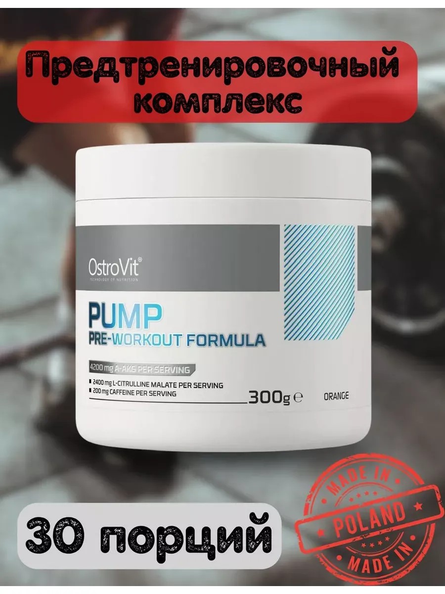 Предтренировочный комплекс от польского бренда OstroVit начинает свою работу уже с первого приема. Ваши тренировки будут переходить на совершенно новый уровень, мышцы будут налиты как «камень», вены будут подниматься над уровнем кожи, придавая красивый венозный рисунок. Ostrovit Pump PreWorkout за счет аргинина и цитруллина - увеличивает выработку оксида азота (NO), который отвечает за обменные процессы между сосудами и тканями, выделяя вены, тем самым увеличивая диаметр сосуда, а значит и увеличивая поступление питательных веществ к тканям, и наоборот, выводит недоокисленные продукты метаболизма от тканей, тем самым не засоряя сами ткани. Благодаря бета-аланину – вы позабудете о усталости, процессы восстановления будут значительно ускорены. Также присутствуют биологические добавки, такие как: тирозин, карнитин, кофеин, лейцин и таурин. Состав на 1 порцию (10 грамм): L-аргинина альфакетоглутарат 4200 мг,в том числе L-аргинин 2772 мг,Цитруллин малат 2500 мг,в том числе L-цитруллин 1625 мг,Бета-аланин 800 мг,Таурин 500 мг,L-лейцин 500 мг,L-карнитин тартрат 350 мг,из них L-карнитин 235 мг,L-тирозин 300 мг,Кофеин безводный 200 мг.