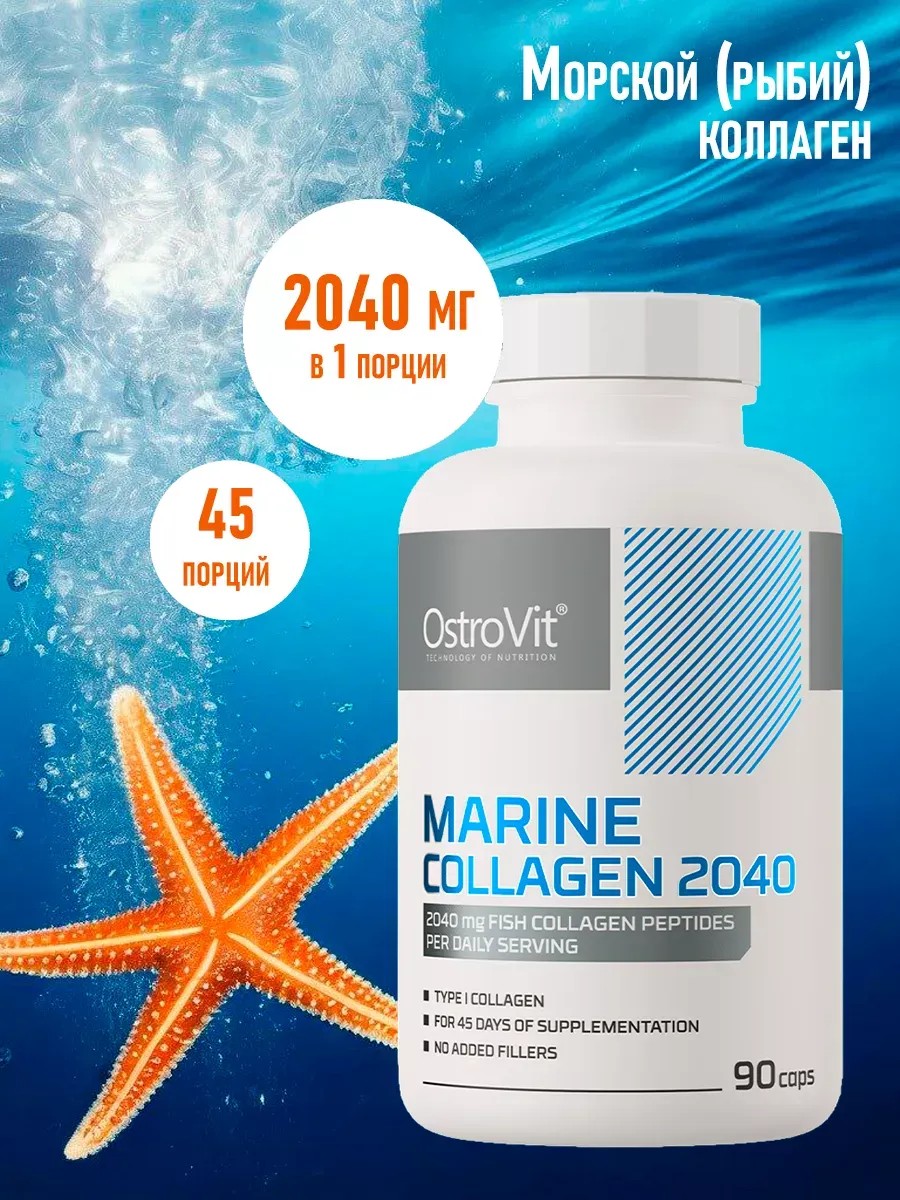 OstroVit Морской Kоллаген 2040 мг высококачественная биологически активная добавка, которая является источником ценного морского коллагена I типа, прекрасно усваивающегося в организме человека. Продукт с простым составом, выпускаемый в виде легко глотаемых капсул, прекрасно подойдет как спортсменам, так и людям, ценящим здоровый и красивый внешний вид. В одной порции содержится 2040 мг гидролизованных пептидов рыбьего коллагена. Упаковка продукта содержит 45 порций. В состав препарата входит только морской коллаген и компоненты оболочки капсулы, без лишних добавок.