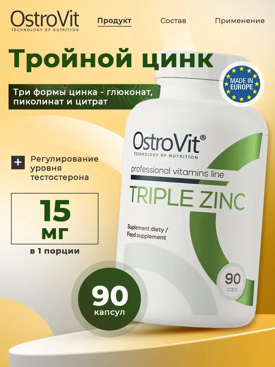 OstroVit Цинк Triple Zinc 90 капсул для мышц и кожи