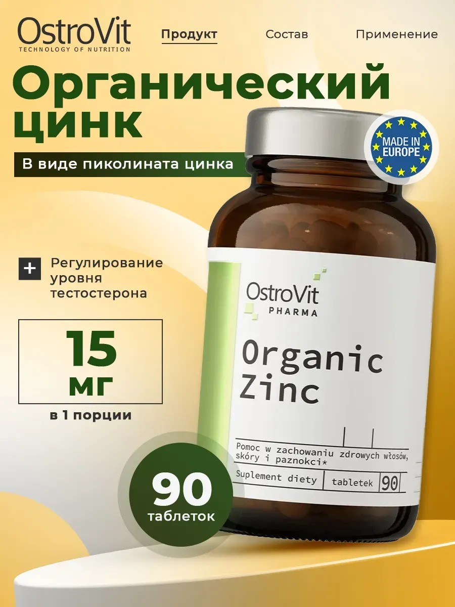 Органический цинк 15 мг, 90 таблеток Ostrovit, Pharma Organic Zinc 15 mg, 90 tabs - это биологически активная добавка, которая является источником цинка в высокобиодоступной форме пиколината цинка. Продукт предназначен людям, которым необходимо дополнить свой ежедневный рацион ценным микроэлементом. Это очень важный минерал, который участвует в огромном количестве ферментативных реакций, чем любой другой микроэлемент. Органический цинк подходит как для мужчин, так для женщин и девушек, взрослых и подростков. Цинк – незаменимый для мужчин элемент, естественным путем стимулирующий повышение уровня тестостерона – гормона, отвечающего за полноценную работу половых функций мужчины, потенцию и здоровый внешний вид. ПОЛЬЗА: Повышение иммунитета и защитных функций организма; Повышает остроту зрения и способствует более быстрой адаптации глаз к темноте; Нормализация уровня сахара в крови; Поддержка нервной системы, от нервов; Обеспечение нормального функционирования мозга, улучшения памяти и качество сна; Стимуляция образования коллагена и кератина, влияя на рост волос и ногтей, против выпадения; Для подростка лечение дерматологических проблем (шелушение, псориаз, акне, угри); Замедление процессов старения клеток. Он активно участвует в очищении и улучшении состояния красоты вашей кожи лица, предотвращает появление прыщей и противостоит стрессу, которые могут повлиять на ваш вид и баланс настроения. Этот спортивный комплекс питания (спортпит) влияет на регуляцию аппетита и помогает контролировать balance веса, что будет особенно полезно для тех, кто стремится к похудению. Этот комплексный minerals также является отличным подарком для ваших близких и друзей, которые заботятся о зож и поддерживают активный образ жизни. Уникальная формула таблеток цынк - это эффективный антистрессовый набор спортивных товаров, предназначенный для поддержки нервной системы. Он имеет успокоительное и противовирусное действие против простуды. Женские и мужские спорт витамины vitamin являются незаменимым помощником для спортсменов и тех, кто стремится укрепить свое здоровье. Минеральный complex помогает увеличить массу и рост мышц, а также способствует восстановлению после тренировок. Если вы ищете натуральный препарат, который поможет улучшить общее состояние организма, поддержать силу мышц, сердца, сосуды и суставы, а также повысить иммунитет, энергию и возбуждение, то цинк - ваш выбор, наслаждайтесь всеми его плюсами! ПРИМЕНЕНИE: Принимайте 1 порцию (1 таблетку) в день, после еды. ПРЕДУПРЕЖДЕНИЕ: Проконсультируйтесь с врачом перед применением пищевых добавок, если вы проходите курс лечения от какого-либо заболевания. Не употребляйте при аллергия на любой из ингредиентов продукта. Продукт не следует использовать детям, беременным женщинам и кормящим матерям. Хранить в плотно закрытой упаковке в сухом, защищенном от прямых солнечных лучей, месте, недоступном для детей, при температуре не более 15-25°C.
