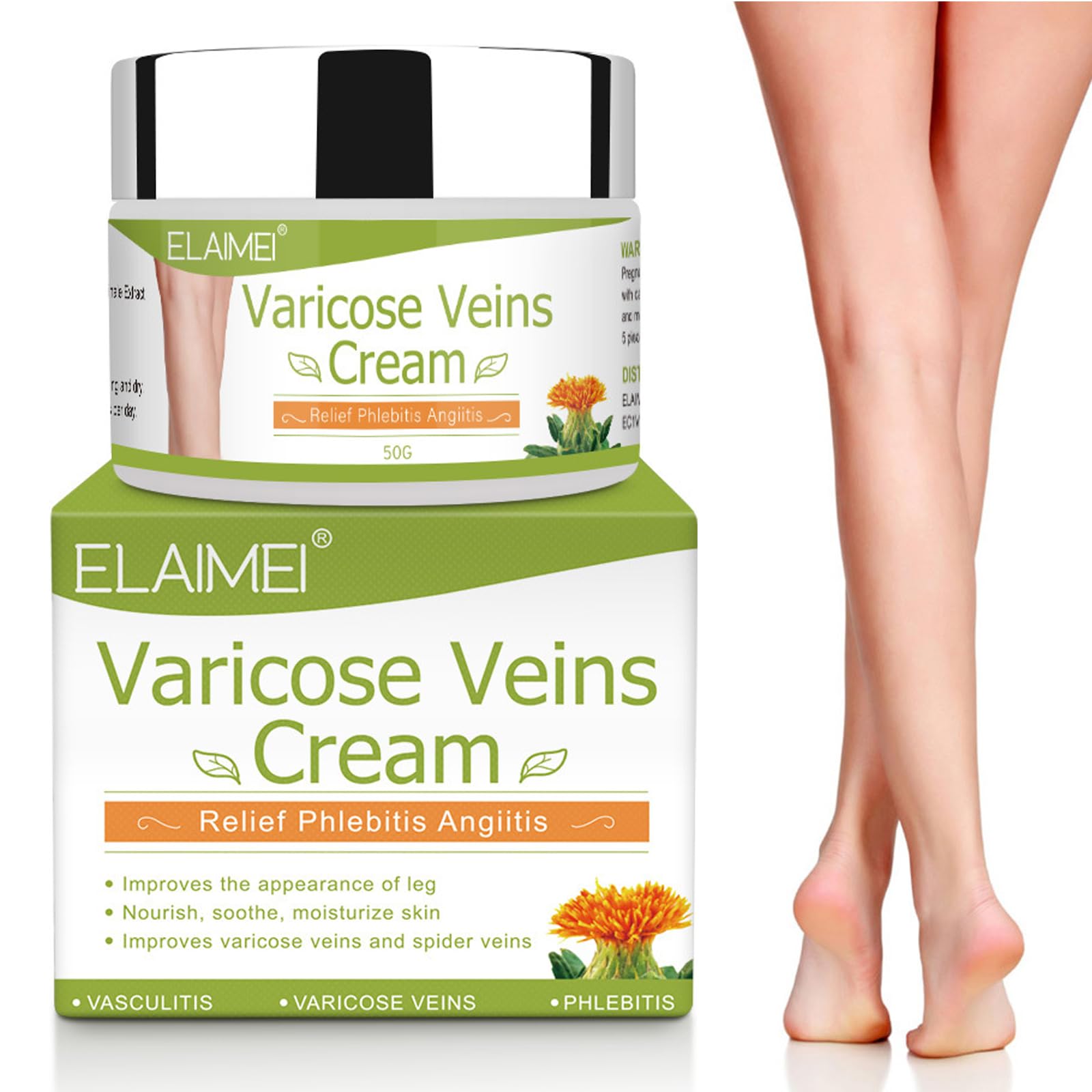 Easy to Use: Take a proper amount of this product and apply it to the discomfort area, massage from bottom to top for 2-3 minutes until absorbed. 3-5 times a day.Need to persist for 1-2 months. Natural Ingredients: With Sophora Extract and other organic ingredients,which help reduce the appearance of varicose and spider veins,free from animal testing. Paraben-free. Gentle formula is great alternative to painful surgery. SAFE AND MILD:This cream is great for all skin types. Moisturizes your skin while helping aid in circulation. Can help with all concerns- spider vein, varicose veins, cellulite.When a lotion is applied, the powerful ingredients travel through your skin working on the problem internally. Applicable People: For patients with vasculitis and varicose veins. Phlebitis. Varicose veins thromboembolic vasculitis, atherosclerotic occlusive disease, Raynaud's disease, ecchymosis of the legs are also symptoms caused by the above diseases. Such as weakness of the extremities (drooping, swelling, weakness), swelling of the lower extremities, cold fear, itching of the skin. Be Confident Again in Your Own Skin: Varicose veins Leg Cream helps soften and smooth the look of skin in areas with varicose veins making it possible to feel confident even in shorts, skirts, and dresses. No more wearing long pants in the summer to hide your varicose veins!.