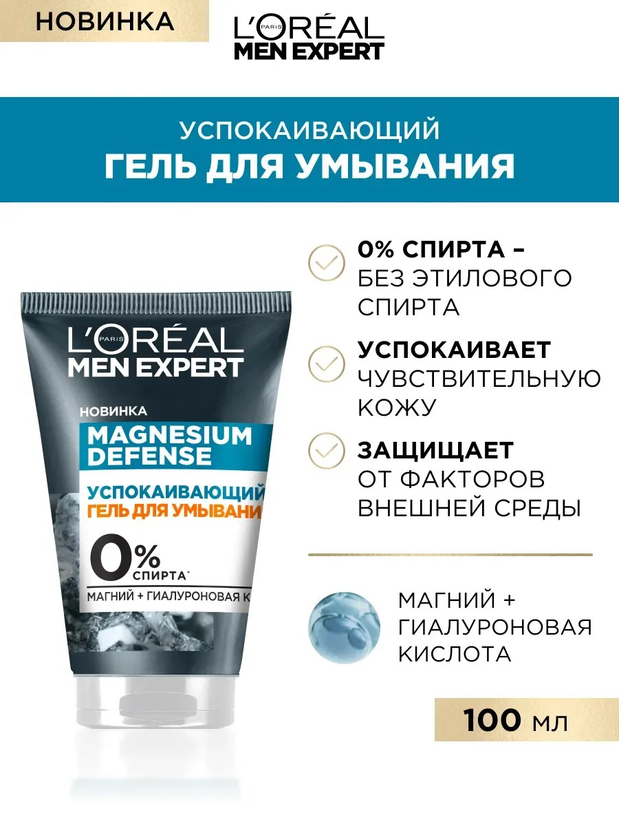 The first hypoallergenic cleansing gel Men Expert Magnesium Defense from L'Oreal Paris is suitable for gentle cleansing of sensitive men's facial skin. EFFECTIVENESS: Magnesium Defense cleanser is designed for daily cleansing of sensitive men's skin. The gel gently cleanses impurities, has a moisturizing and soothing effect. The hypoallergenic, alcohol-free formula has been dermatologically tested. HOW TO USE: Apply a small amount of gel to a damp face, avoiding the eye area, massage gently, then rinse with water. Use daily for best results. ACTIVE INGREDIENTS: Magnesium strengthens the skin's own defenses against aggressive external influences. Hyaluronic acid provides deep hydration of the skin. Salicylic acid gently exfoliates dead skin cells and evens out skin texture. *You can also find this cosmetic product by searching for: beauty products; cleanser for men; Skin care; skin care; hyaluronic acid. L'Oreal Paris Men Expert Magnesium Defense – L'Oreal Paris Men Expert Magnesium Defense Facial Cleanser, 100 ml.