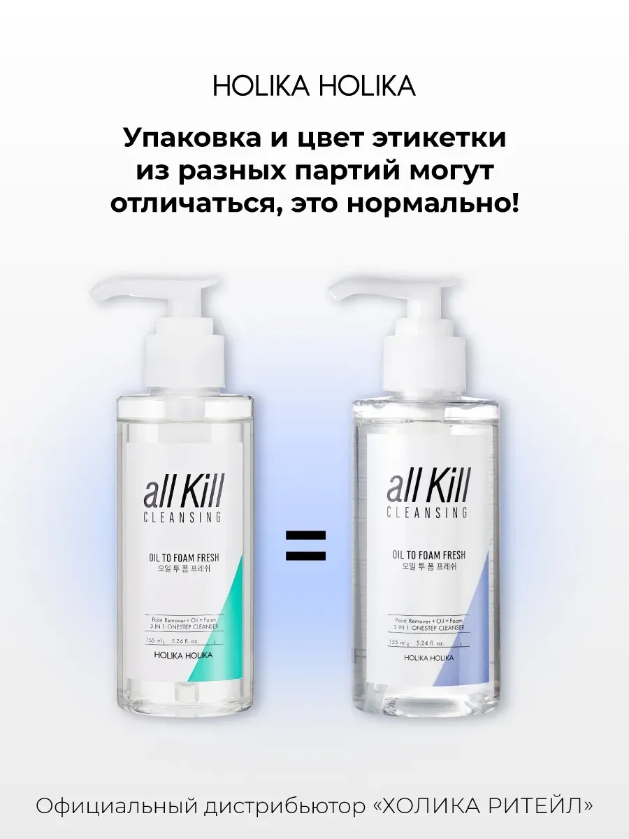 Dive into the world of Korean cosmetics with the All Kill Cleansing Oil To Foam Fresh, a cleansing oil-to-foam cleanser created for those who value high-quality facial care. This 3-in-1 product combines a cleansing oil, a cleansing foam, and a massager, providing comprehensive skin care. It's ideal for removing makeup, including long-lasting foundation and SPF, and for deep pore cleansing. The All Kill Cleansing Oil To Foam is more than just a face wash; it's a true savior for oily and combination skin. Its formula, enriched with collagen and macadamia oil, helps combat blackheads and prevents flaking, leaving skin soft and hydrated. Mild surfactants gently cleanse without irritating even the most sensitive skin. Using this product is a simple and effective way to keep your skin in perfect condition. Apply the oil to dry skin, massage, add a little water, and rinse off the resulting lather. This product not only cleanses but also conditions the skin, leaving it firmer and more radiant. Discover the benefits of Korean skincare with All Kill by Holika Holika. This hydrophilic facial oil will become your indispensable assistant in the fight for clear and healthy skin. Try it and see for yourself its effectiveness. Search terms: face wash, blackhead removal, oil for oily and combination skin, Korean facial cosmetics, Holika Holika.