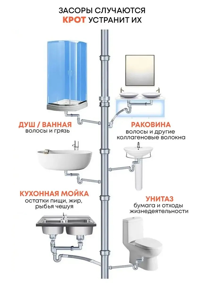Полностью удаляет даже стойкие засоры в канализационных трубах. Уничтожает микробы и устраняет неприятные запахи. Растворяет жиры, волосы и остатки пищи не повреждая трубы. Подходит для всех видов труб. Гранулы достигая засора действуют эффективно и мощно. Трос очиститель для устранения удаления гранулы порошок торнадо прочистка канализация против засор в унитаз в ванной туалет раковина анти засор щипцы инструмент средства от засоров антизасор товары для уборки для чистки каустическая сода едкий натр. КРОТ Торнадо гранулированный 90 г это прекрасное средство для прочистки труб и средство от засоров в трубах. Очиститель труб справится с любым засором! Очистка труб произойдет быстро и неизбежно.