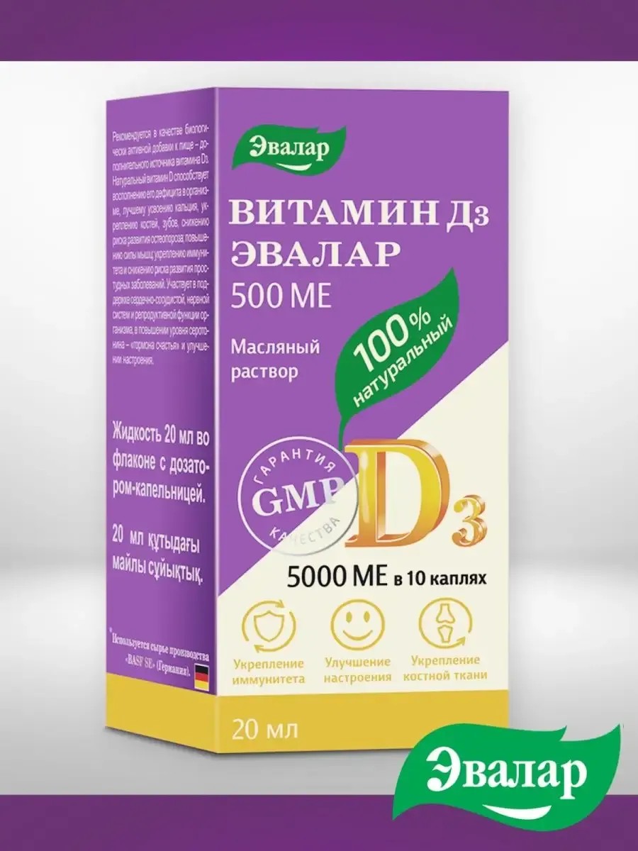 Натуральный витамин D способствует восполнению его дефицита в организме, лучшему усвоению кальция, укреплению костей зубов, снижению риска развития остеопороза; повышению силы мышц; укреплению иммунитета и снижению риска развития простудных заболеваний. Участвует в поддержании сердечно-сосудистой, нервной систем и репродуктивной функции организма, в повышении уровня серотонина - «гормона счастья» и улучшении настроения. Рекомендации по применению: взрослым и детям от 3-х лет.