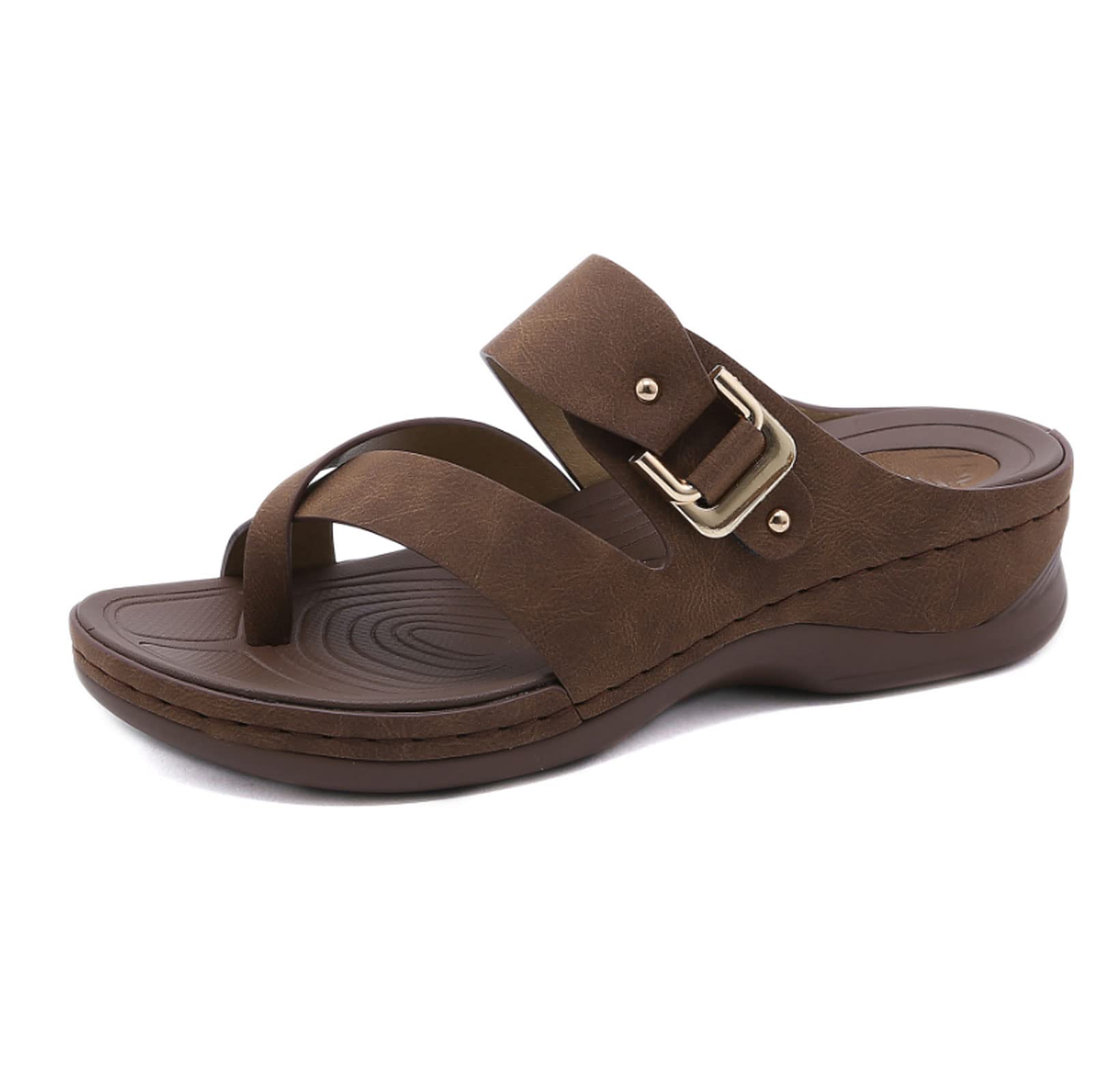 Comfy Platform Sandal Shoes With Toe Arch Support, Suitable For Women Who Suffering From Bunions, Which Can Help The Thumb To Recover, This Shoe Reduces The Pain Of The Bunion And Allows You To Walk Comfortably Commodity attributes Product category: set toe sandals Color: black, earthy yellow, brown Size: 36,37,38,39,40,41,42 Upper Material: Artificial PU Toe shape: round head Style: leisure Inner material: microfiber inner Heel height: 4cm Package including: 1 pair of Women's flat sandals