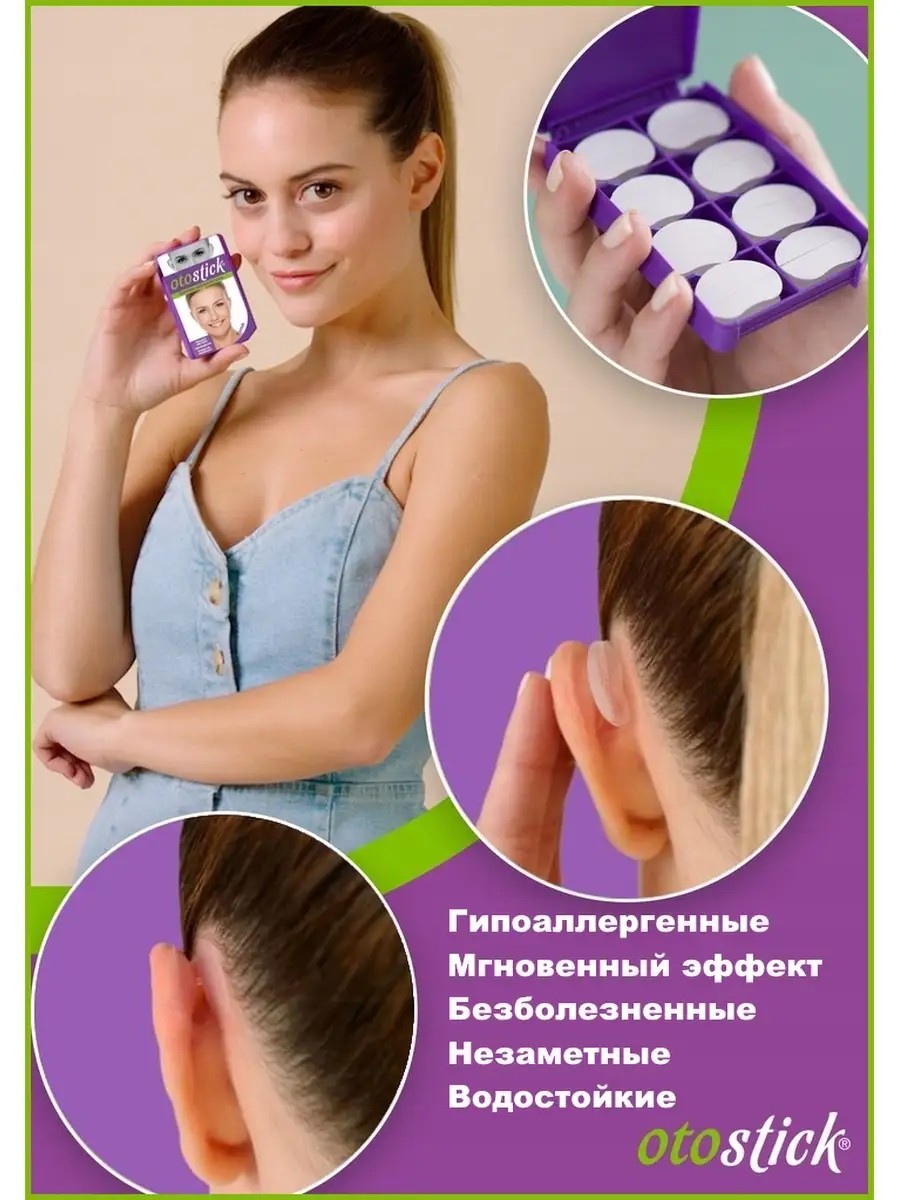 Косметический ушной прозрачный корректор Otostick предназначен для длительного ношения, позволяет визуально корректировать лопоухость - отличная альтернатива отопластике и возможность чувствовать себя увереннее. Силиконовые тейпы для ушей Отостик не портят красоты вашего лица, они прозрачные, совсем незаметны и позволяют носить очки или медицинскую маску. Размер каждого тейпа - 22*15*6 мм. Корректор не вызывает дискомфорта, с ним можно спать, заниматься спортом, мыть голову, он устойчив к поту и теплу. При правильном использовании он будет оставаться на месте до 7 дней. Тейпирование осуществляется при помощи безопасного медицинского клея в комплекте. Важно: после удаления корректоров ватными палочками, пропитанными жирной текстурой, следует дать коже отдохнуть в течение 8 часов и только затем можно клеить новые тейпы. Продукт унисекс - подходит женщинам и мужчинам, а также его можно использовать для детей с 3 лет. Лейкопластырь для ушей комплектуется спиртовыми салфетками, при помощи которых вы сможете подготовить кожу к нанесению корректора.