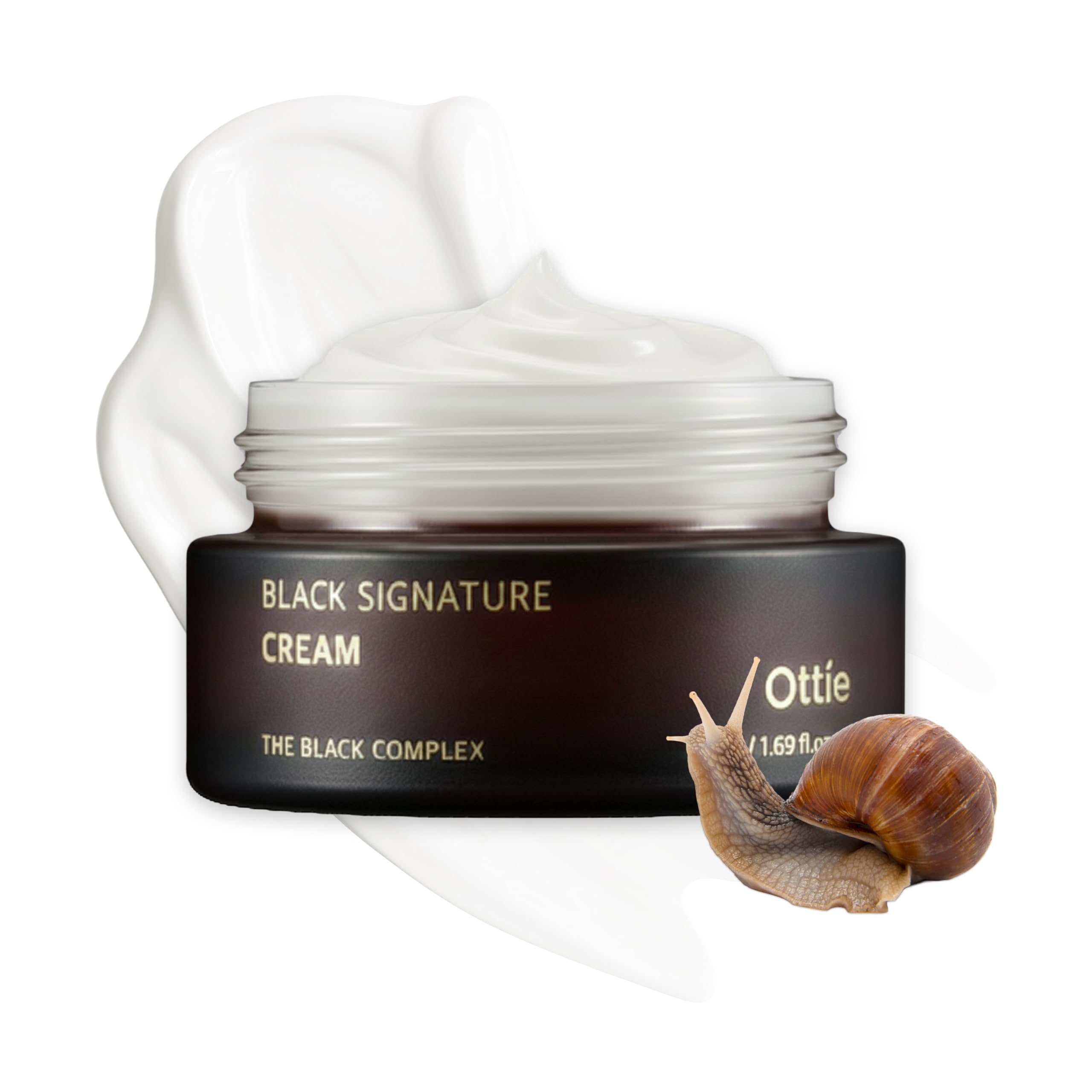 Ottie Black Signature Cream with 60% Snail Secretion Filtrate Hydrating Korean Face Cream Rich Moisturizer for Smooth Supple-Looking Skin 50ml / 1.69 fl.oz