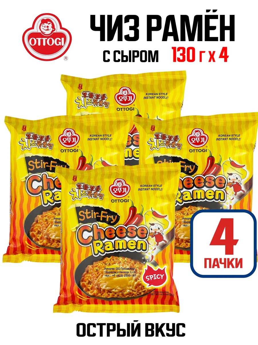 | Комплектация | Лапша чиз рамен с сыром Stir-Fry острая, Корея, 130 г - 4 шт |