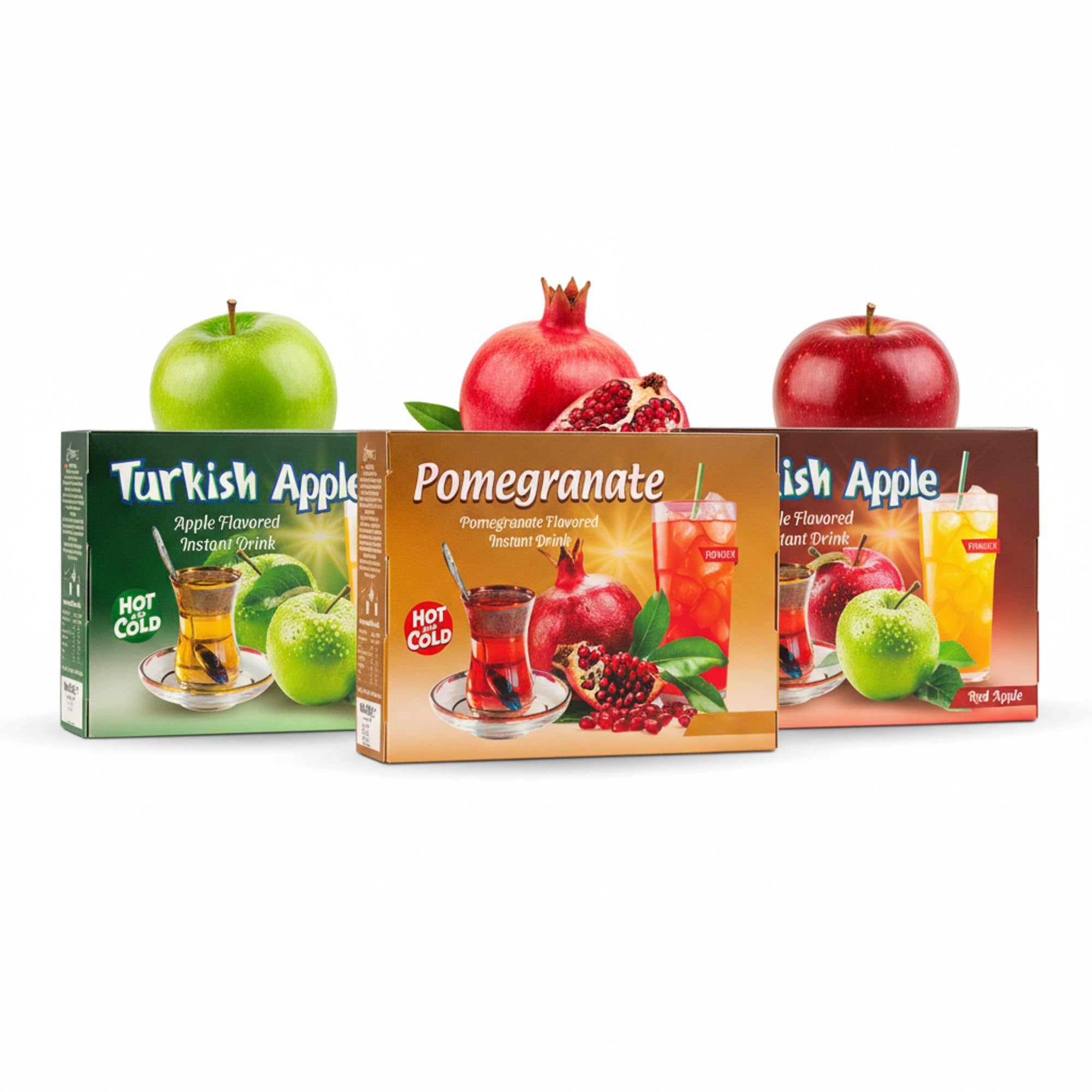 Discover the diversity With this set of three types of instant drinks – Turkish apple tea in red and green and aromatic pomegranate tea – you can enjoy the unmistakable taste of traditional Turkish tea culture. Each 250g pack delivers a fruity touch reminiscent of holiday memories and hospitality. Whether for a nice get-together with friends or as a little break from everyday life, you bring a piece of Orient straight into your home. Preparation and enjoyment The quick and simple preparation makes it possible to easily dissolve the powder in hot or cold water. This creates a delicious tea in no time, which you can enjoy in every season. Especially in summer, the drink offers a refreshing cooling with an intense fruit aroma, while providing pleasant warmth on cold days. Versatile application options. Try the varieties separately or combine them as desired. The aromatic powder can also be used in many ways to refine desserts, cakes or puddings. Bring surprising taste moments into your kitchen and share them with your loved ones. Tradition and quality For years, the Ottoman brand has stood for high-quality ingredients and carefully delivered recipes. Every sip reflects the rich history and culture that makes Turkish tea an indispensable drink in many households. Enjoy the authentic flair and be inspired by the harmonious balance between sweetness and acidity. Keep the packages cool and dry to preserve the fresh aroma. Contents: 1 x 250 g Turkish apple tea red, 1 x 250 g Turkish apple tea green, 1 x 250 g pomegranate tea. INGREDIENTS Green apple tea: sugar, acidulant citric acid, aroma, release agent (tricalcium phosphate), vitamin C, coloring agents (green-S, ammonone sulphite caramel). Apple tea red: sugar, acidulant citric acid, aroma, secreting agent (tricalcium phosphate), vitamin C, coloring agents (ammonium sulphite caramel, orange-S, green-S) May affect activity and attention in children. Pomegranate: sugar, acidulant citric acid, aroma, solvent (tricalcium phosphate), vitamin C, colors (azorubine, cochineal red A) INSTRUCTIONS FOR USE Preparation (hot or cold): put two teaspoons of tea powder in a tea glass and pour water. Then stir well. SAFETY WARNING May affect activity and attention in children MANUFACTURER CONTACT INFORMATION Ottoman GmbH, Zu den Neckargärten 1, 14974, Ludwigsfelde, DE See moreOttoman Turkse appel- en granaatappelthee, 3 soorten à 250 g instantdrank • met heerlijke fruitsmaak, warm en koud eetbaar • traditioneel genot Ontdek de diversiteit Met deze set van drie soorten instant drank – Turkse appelthee in rood en groen en aromatische granaatappelthee – geniet je van de onmiskenbare smaak van traditionele Turkse theecultuur. Elke verpakking van 250 g levert een fruitige touch die doet denken aan vakantieherinneringen en gastvrijheid. Of het nu voor gezellig samenzijn met vrienden of als kleine pauze in het dagelijks leven is, je haalt een stukje Orient direct in huis. Bereiding en genot De snelle en eenvoudige bereiding maakt het mogelijk om het poeder eenvoudig in warm of koud water op te lossen. Zo ontstaat in een handomdraai een heerlijke thee, waarvan je in elk seizoen kunt genieten. Vooral in de zomer biedt de drank een verfrissende afkoeling met intens fruitaroma, terwijl het op koude dagen weldadige warmte geeft. Veelzijdige toepassingsmogelijkheden. Probeer de soorten afzonderlijk of combineer ze naar wens. Ook voor het verfijnen van desserts, cake of puddings kan het aromatische poeder veelzijdig worden gebruikt. Breng verrassende smaakmomenten in je keuken en deel deze met je dierbaren. Traditie en kwaliteit Al jaren staat het merk ottoman voor hoogwaardige ingrediënten en zorgvuldig geleverde recepten. Elke slok weerspiegelt de rijke geschiedenis en cultuur, die de Turkse thee tot een onmisbare drank in veel huishoudens maakt. Geniet van de authentieke flair en laat je inspireren door de harmonieuze balans tussen zoetheid en zuur. Bewaar de verpakkingen koel en droog om het frisse aroma te behouden. Inhoud: 1 x 250 g Turkse appelthee rood, 1 x 250 g Turkse appelthee groen, 1 x 250 g granaatappelthee. INGREDIËNTEN Groene appelthee: suiker, zuurmiddel citroenzuur, aroma, afscheidingsmiddel (tricalciumfosfaat), vitamine C, kleurstoffen (groen-S, ammononsulfietkaramel). Appelthee rood: suiker, zuurmiddel citroenzuur, aroma, afscheidingsmiddel (tricalciumfosfaat), vitamine C, kleurstoffen (ammoniumsulfietkaramel, oranje-S, groen-S) Kan de activiteit en aandacht bij kinderen beïnvloeden. Granaatappel: suiker, zuurmiddel citroenzuur, aroma, oplosmiddel (tricalciumfosfaat), vitamine C, kleurstoffen (azorubine, cochenillerood A) GEBRUIKSAANWIJZING Bereiding (warm of koud): doe twee theelepels theepoeder in een theeglas en giet water. Daarna goed roeren. VEILIGHEIDSWAARSCHUWING Kan de activiteit en aandacht bij kinderen beïnvloeden CONTACTINFORMATIE FABRIKANT Ottoman GmbH, Zu den Neckargärten 1, 14974, Ludwigsfelde, DE Meer bekijken