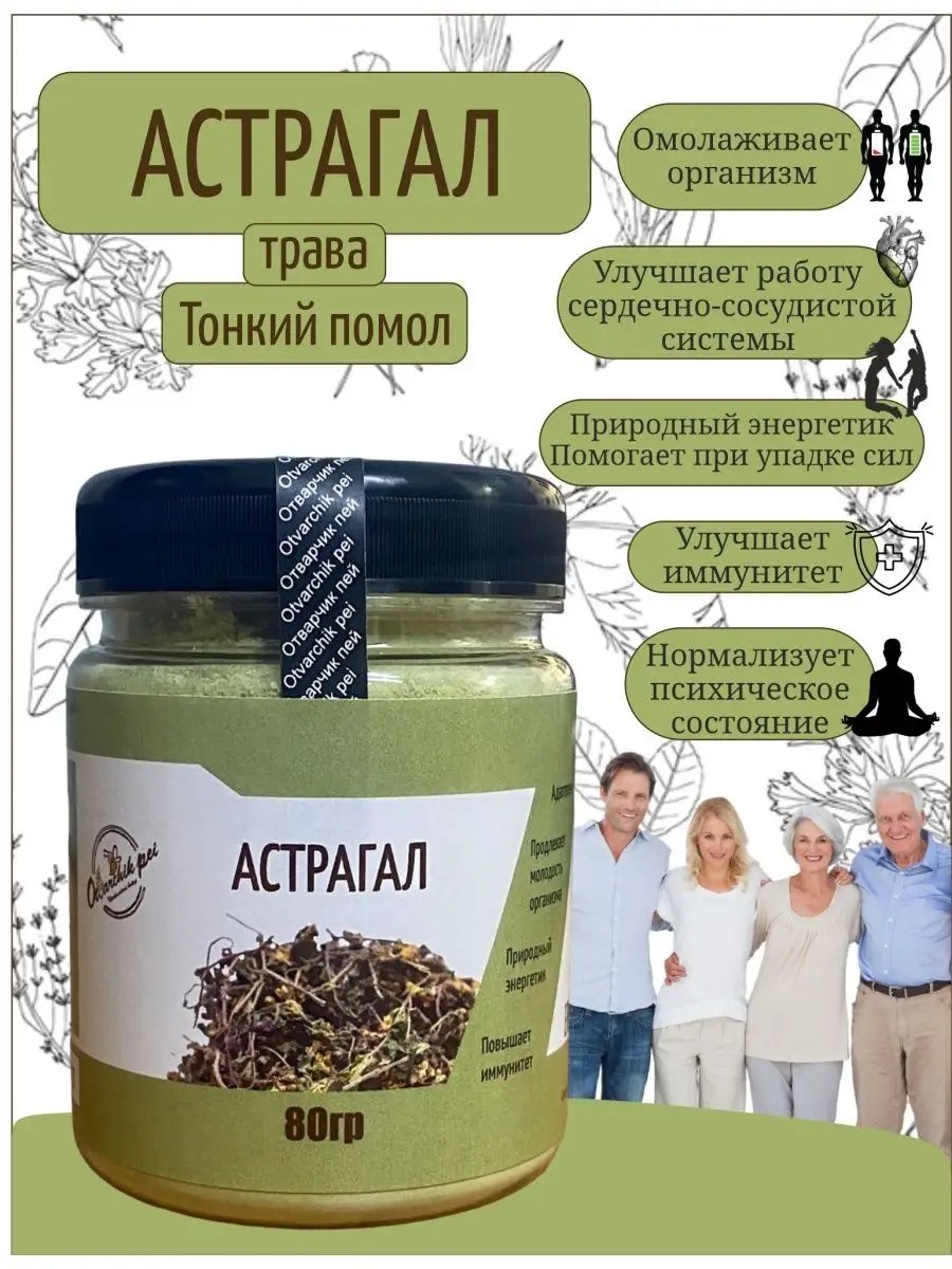 | Комплектация | Порошок травы астрагала 80 грамм в баночке |