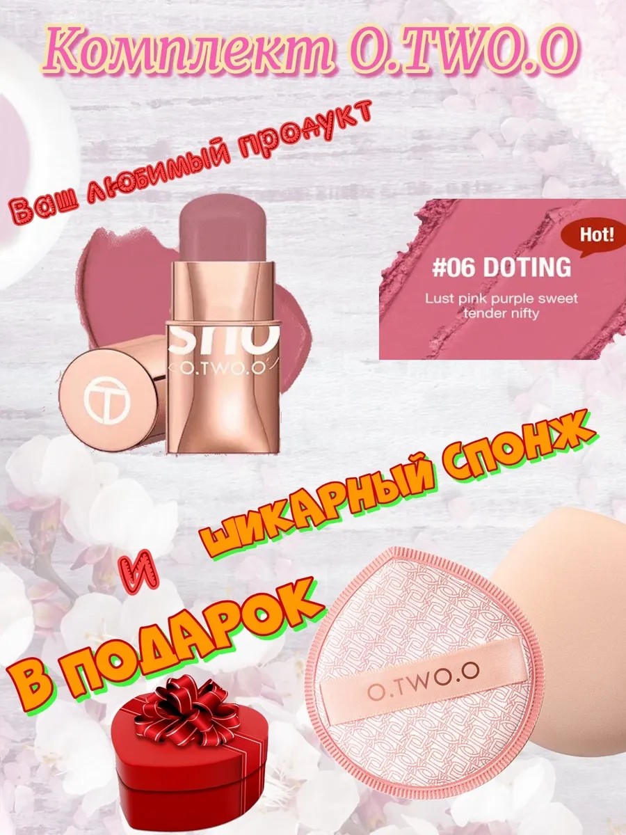 OTWOO Набор O.TWO.O: Стик-румяна PORTABLE 3в1, в оттенке 06 (Doting),7гр. + СПОНЖ в ПОДАРОК.