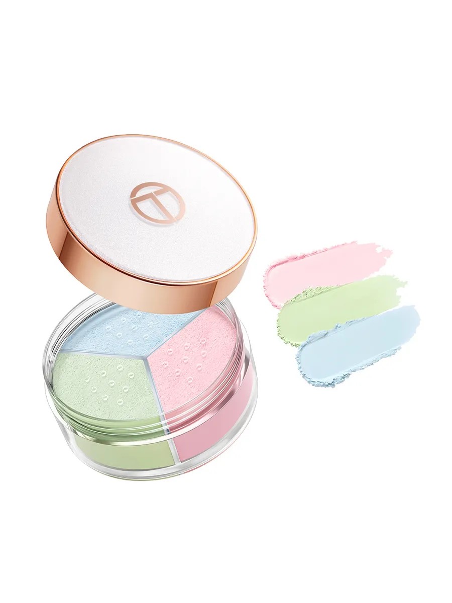 Three-color loose powder is suitable for all skin types: combination and oily, dry and normal, problematic and mature.
