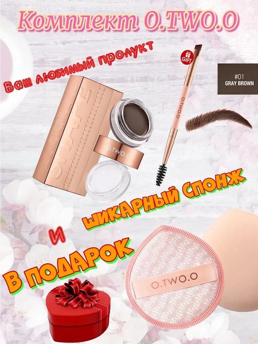 OTWOO Восков гель и фиксатор для бровей,2в1, 01(Серо-коричн)+СПОНЖ