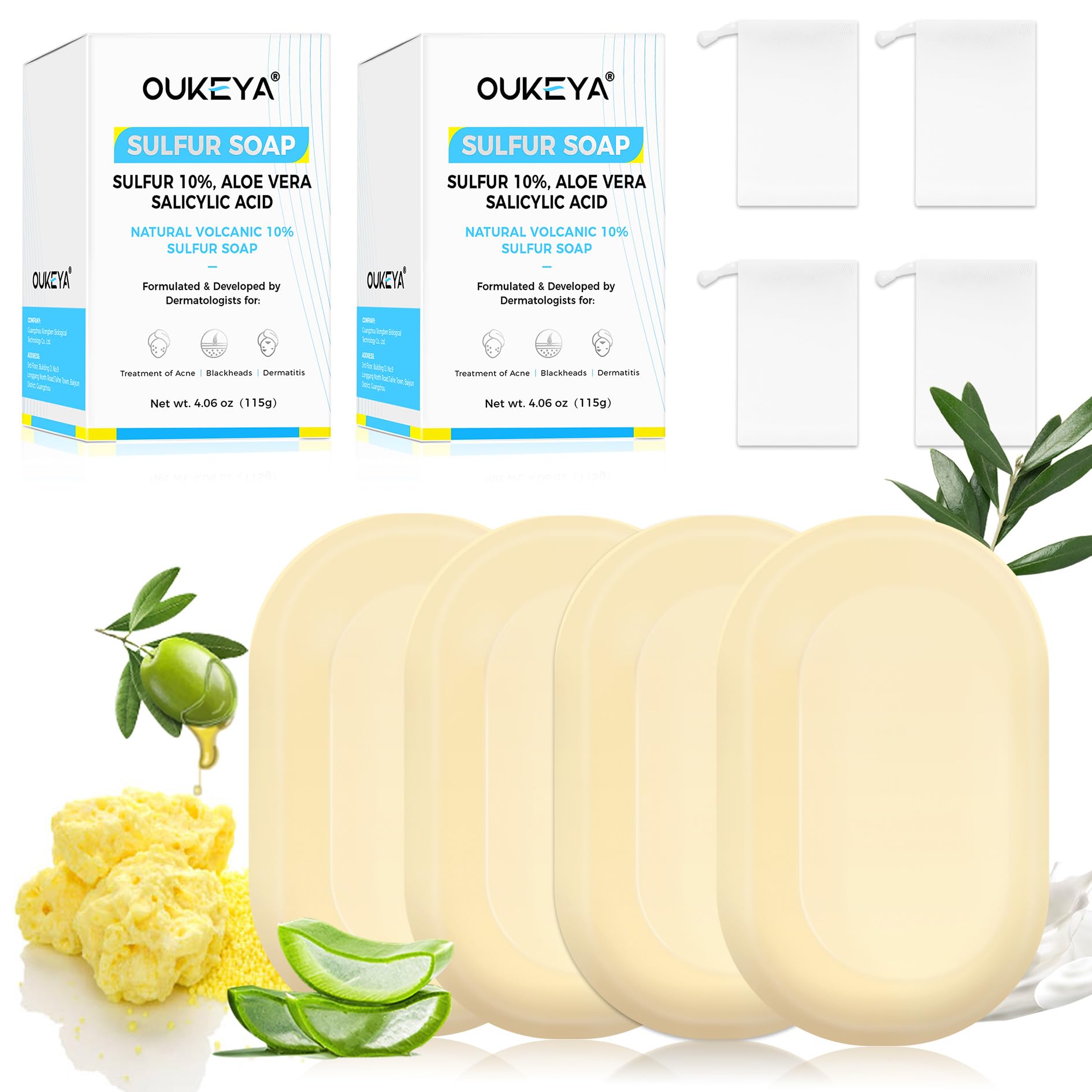 Product Details Product Name: Sulfur Soap Net Contents: 115g Product Introduction: Sulfur soap is a deep-cleansing soap designed for oily and acne-prone skin. It combines natural sulfur with plant essences to gently and effectively cleanse the skin, regulate sebum production, inhibit bacterial growth, and help improve skin problems such as acne and blackheads. Its unique formula can soothe the skin, balance oil and water, and provide complete moisturizing care, keeping skin fresh and healthy. Directions for Use: When cleansing or bathing, wet the soap, rub it with a cloth to create a lather, apply the lather to the skin on the face or body, and massage for 1-2 minutes, then rinse with clean water. Precautions: To prolong the soap's shelf life, store it in a dry container after use to remove moisture and keep it dry. After opening and use, water droplets may be released this is a moisturizing ingredient. Don't worry, this is normal. During use, if the soap accidentally comes into contact with the eyes, rinse immediately with plenty of clean water. If you experience any discomfort, discontinue use immediately. Keep out of reach of infants and young children to prevent accidental ingestion. Storage: Store in a dry place at room temperature and avoid direct sunlight. SAFETY WARNING For external use only. Avoid contact with eyes. If contact occurs, rinse thoroughly with water. If irritation or a rash develops, discontinue use. Keep out of reach of children. Store in a cool, dry place. Do not ingest.Foam Mesh Bag Included Package contents: sulfur soap foam mesh bag. Ideal for our soaps, shower gels, and liquid soaps. The mesh structure allows for deep cleansing and a gentle massage. Convenient drawstring closure for hygienic storage and quick drying. Lightweight and easy to carry: perfect for home, the gym, or travel. Natural, Safe, Versatile Sulfur soap for the whole family, gentle on all skin types with natural sulfur powder, tea tree oil, and a plant-based cleansing complex. Effective against impurities, yet gentle thanks to the absence of sulfates, parabens, and artificial fragrances. Dermatologically tested and hypoallergenic. The ideal goat milk soap for health-conscious individuals, for a birthday, a festive occasion, or for daily use. Moisturizing and Barrier Treatment Nourishes and protects sensitive skin. Our gentle sulfur soap combines hyaluronic acid, glycerin, and goat's milk extract for intense hydration, strengthens the moisture barrier, and soothes dry skin. Tea tree oil reduces redness and irritation. Ideal for sensitive, dehydrated, or stressed skin: it smooths texture, locks in moisture, and gives a healthy glow. Deep Cleansing Exfoliation The sulfur soap powder gently removes dead skin cells, unclogs pores, and deeply cleanses the skin to combat dullness and congestion. Tea tree oil and a plant-based anti-mite complex remove impurities, while palm oil creates a rich lather that cleanses without drying. Enriched with hyaluronic acid, aloe vera, and goat's milk extract, it balances deep cleansing with hydration. Soothing Sulfur soap harnesses the power of natural sulfur powder and tea tree oil to soothe irritated skin. Enriched with salicylic acid, it cleanses pores and prevents breakouts, while the herbal anti-mite complex fights impurities and ensures a deep clean. Ideal for acne-prone, sensitive, or congested skin, this soap cleanses, calms redness, and evens skin tone.OUKEYA 10 Savon Au Soufre, Savon Lait De Chevre, Cide Salicylique, Huile d'Arbre à Thé, Aloe Vera, Antibactérien, Apaisant, Nettoyage en Profondeur, Réparation de la Barrière Cutanée, 4 x 115gDESCRIPTION DU PRODUIT DESCRIPTION DU PRODUIT Dettagli del prodotto Détails du produit Nom du produit : Savon au soufre Contenu net : 115g Introduction au produit : Le savon au soufre est un savon nettoyant en profondeur conçu pour les peaux grasses et acnéiques. Il combine du soufre naturel avec des essences végétales pour nettoyer délicatement et efficacement la peau, réguler la sécrétion de sébum, inhiber la croissance bactérienne et aider à améliorer les problèmes cutanés tels que l'acné et les points noirs. Sa formule unique peut apaiser la peau, équilibrer l'eau et l'huile, et fournir un soin hydratant complet, gardant la peau fraîche et saine. Mode d'emploi : Lors du nettoyage ou du bain, mouillez le savon, frottez-le avec un filet pour faire de la mousse, appliquez la mousse sur la peau du visage ou du corps et massez pendant 1-2 minutes, puis rincez à l'eau propre. Précautions : Pour prolonger la durée de vie du savon, conservez-le dans un contenant sec après utilisation pour éliminer l'humidité et le garder sec après ouverture et utilisation, des cristaux de gouttes d'eau peuvent être libérés, ce qui est un ingrédient hydratant. Ne vous inquiétez pas, c'est normal pendant l'utilisation, si le savon entre accidentellement en contact avec les yeux, rincez immédiatement avec beaucoup d'eau propre si vous ressentez un inconfort, arrêtez immédiatement l'utilisation gardez hors de portée des nourrissons et des jeunes enfants pour éviter toute ingestion accidentelle. Méthode de conservation : Conservez dans un endroit sec à température ambiante et évitez l'exposition directe à la lumière du soleil. AVERTISSEMENT DE SÉCURITÉ Pour usage externe uniquement. Éviter tout contact avec les yeux. En cas de contact, rincer abondamment à l'eau. En cas d'irritation ou d'éruption cutanée, cesser l'utilisation. Tenir hors de portée des enfants. Conserver dans un endroit frais et sec. Ne pas ingérer.Sac de filet en mousse inclus Contenu de la livraison : savon au soufre sac en filet pour la mousse. Idéal pour nos savons, gels douche et savons liquides. La structure en filet permet un nettoyage en profondeur et un massage en douceur. Cordon de serrage pratique pour un rangement hygiénique et un séchage rapide. Léger et facile à transporter : parfait pour la maison, la sall