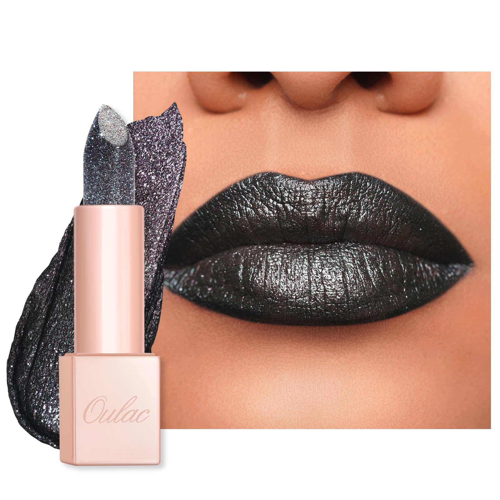 OULAC Halloween Diamond Luster Lipstick black highly pigmented lipstick with fine texture and longlasting moisturizing formula striking lip makeup vegan D07 Monodrama