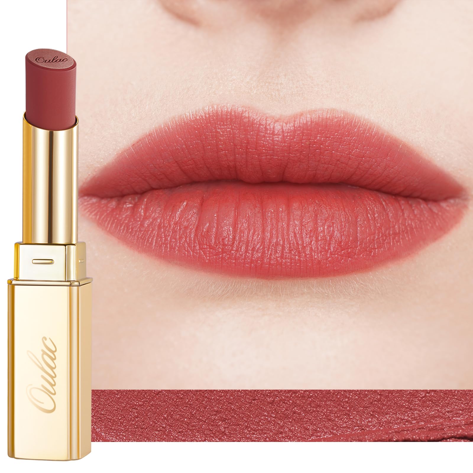 oulac Oulac Matte Lipstick Velvet Long Lasting Anti-Soil Non-Transfer Moisturizing Formula with Rose Oil Cruelty-Free RM01