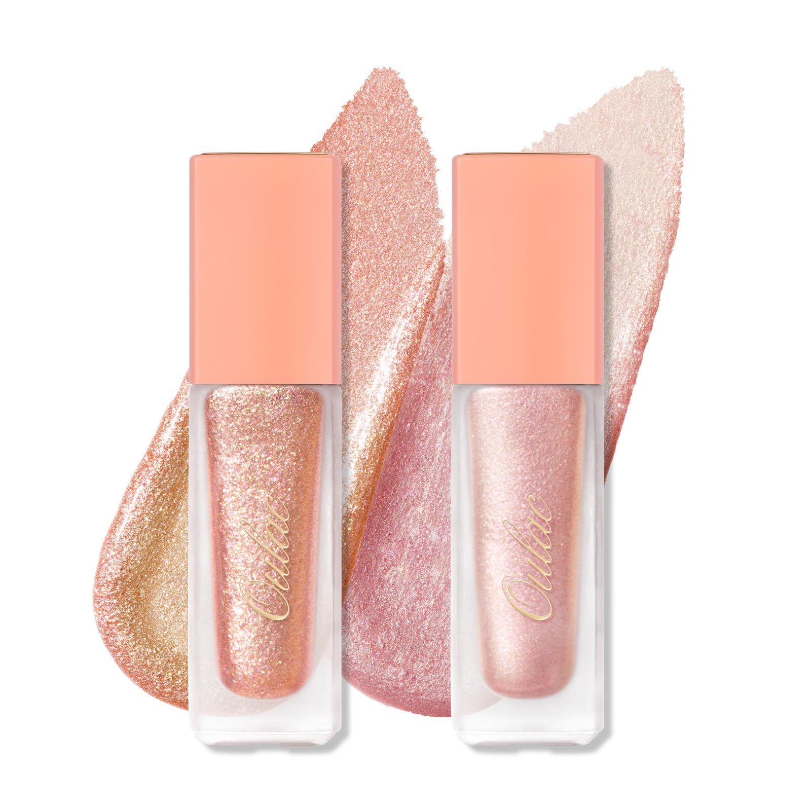 Oulac Lot de 2 fards à paupières liquides - Rose - Paillettes métalliques - Pour éclaircir les yeux - Eyeliner liquide avec paillettes - Finition brillante - Maquillage des yeux - Vegan Cruelty-Free