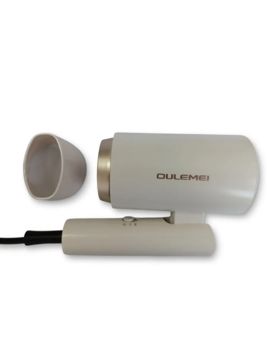 Складной фен для сушки волос с эргономичным дизайном и удобной формой ручки, создают идеальную балансировку. Фен для волос комфортно лежит в руке и не дает рукам устать, благодаря легкому весу и компактным размерам. Кнопки переключения температурных режимов расположены спереди, что создает дополнительные удобства при работе. В комплекте идет одно сопло (концентратор) для концентрированной подачи воздуха, что обеспечивает высокую скорость сушки. Красивый молочный кремовый цвет корпуса фена не стирается и не тускнеет.