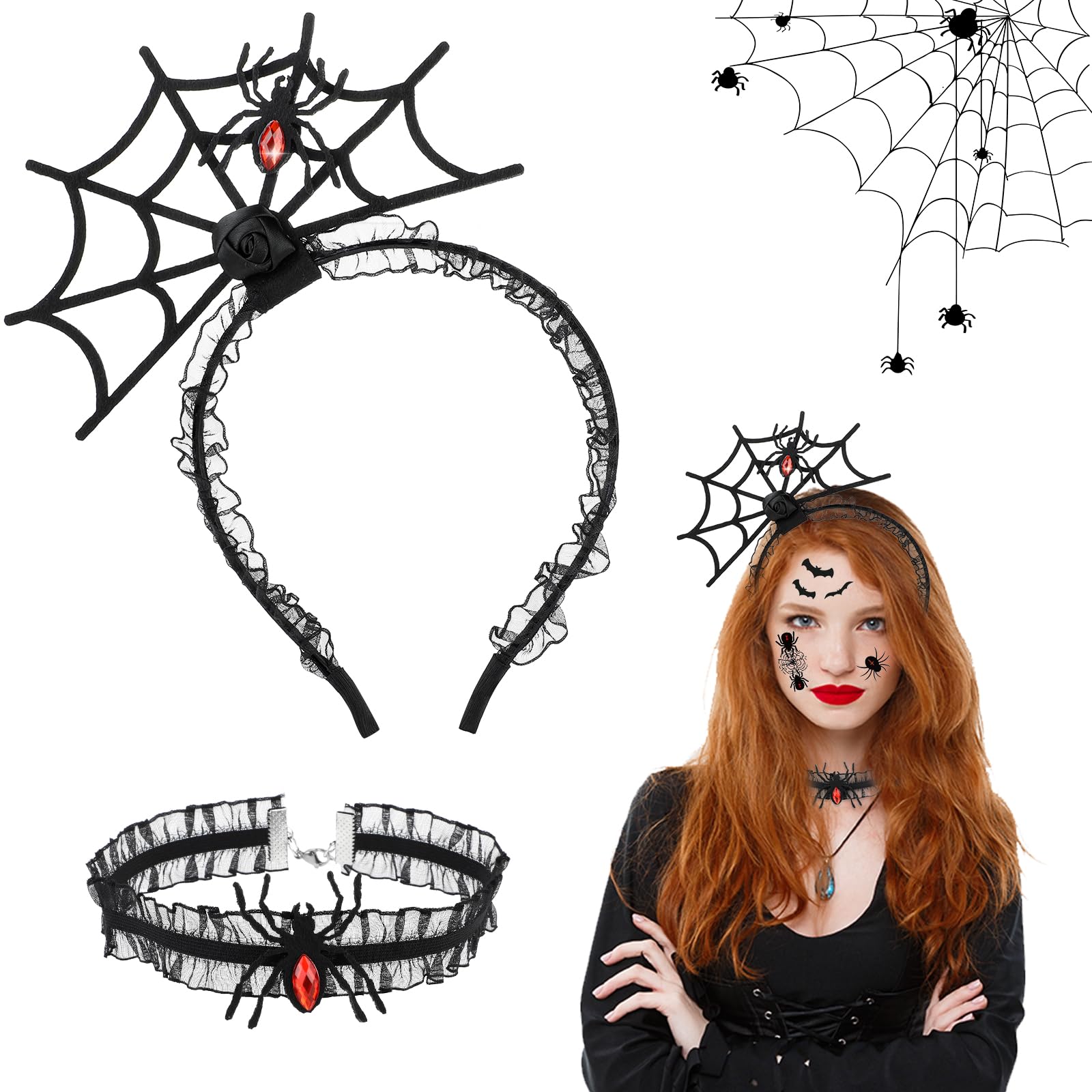 Feature 1.Spider Web Design: Halloween spider headband is designed with classic black spider webs and a small spider decoration, which are suitable for Halloween theme party and will make you more attractive in the crowd. 2. Gothic Choker Necklace: The adjustable Halloween necklace can easily match your various outfits and makeup, and suitable for Halloween party, Gothic, punk, evening dress, salon dresses, and you'll be the center of attention and stand out from the crowd. 3.Wide Application: The spider headband are suitable for many occasions, such as Halloween, masquerade, cosplay party, stage play dress up, photography, festival, ect. It is also a nice Halloween gifts for friends, girlfriend, family, sister, wife.  Specification: Color: black Material: cloth, plastic Product Size: 20.5 x 12.5cm/8.07 x 4.92inch  Package details: 1PCS Halloween spider headband 1PCS Halloween spider necklace  Note: Due to manual measurement, the size and weight may have a certain error. Due to the difference between different monitors, there may be a slight color difference existed.Wide Application: The spider head band are suitable for many occasions, such as Halloween, masquerade, cosplay party, stage play dress up, photography, festival, ect. It is also a nice Halloween gifts for friends, girlfriend, family, sister, wife. Quality Material: The spider headband and spider necklace are made of quality cloth and plastic, lightweight, comfortable to wear, sturdy and stylish, not easy to fade or deform, will not burden your head while wearing. Gothic Choker Necklace: The Halloween headband can easily match your various outfits and makeup, and suitable for Halloween party, Gothic, punk, evening dress, salon dresses, and you'll be the center of attention and stand out from the crowd. Spider Web Design: The halloween spider web hair hoop is designed with classic black spider webs and a small spider decoration, which are suitable for Halloween theme party and will make you more attractive in the crowd. Package Content: You will receive 1 piece of spider web headband and 1 piece of Halloween spider choker gothic necklace. The size of the Spider Web Headband is about 20.5x12.5cm/8.07x4.92inch, and the length of the Halloween necklace is about 30cm/11.8in.