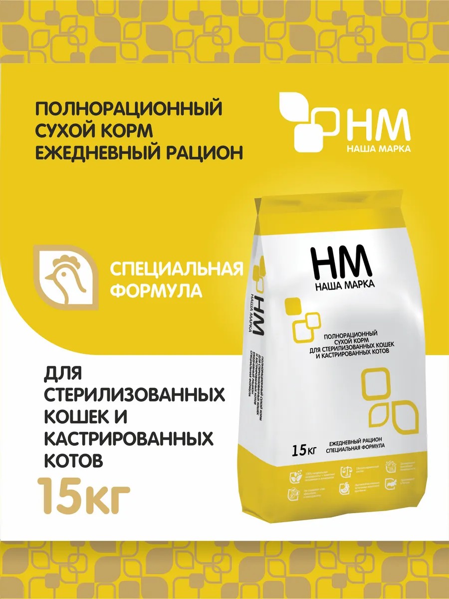 Сухой корм "Наша марка" специально разработан для поддержания здоровья и активности кастрированных и стерилизованных кошек. Сбалансированный состав с курицей и рисом обеспечивает питомцу все необходимые питательные вещества, а оптимальное соотношение белков, жиров и углеводов помогает поддерживать здоровый вес. Корм "Наша марка" с вкусом птицы и злаков понравится даже самым привередливым котам, а его хрустящая текстура способствует очищению зубов и десен. Выбирайте "Наша марка" и дарите своему любимцу долгие годы здоровья и радости!