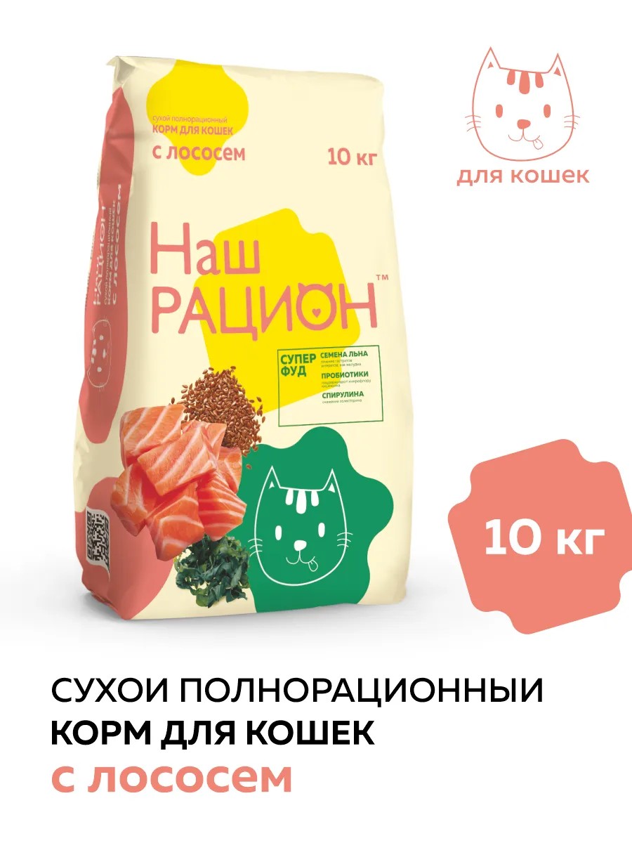 НАШ РАЦИОН Корм для взрослых кошек, лосось, 10кг