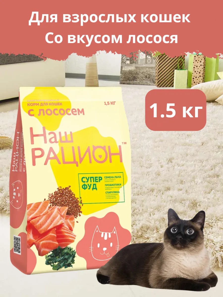 НАШ РАЦИОН Сухой корм для кошек со вкусом лосося 1.5 кг