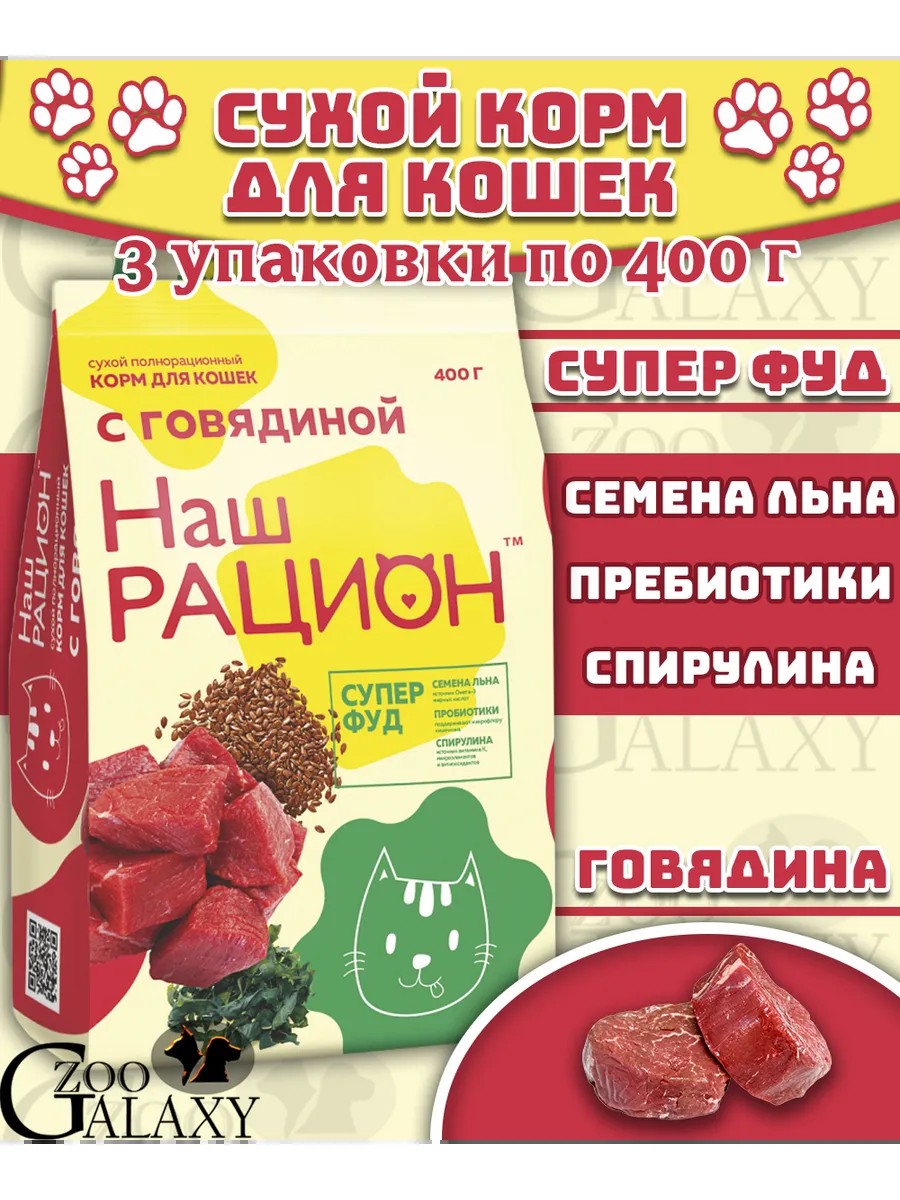 Сухой корм для кошек с говядиной 3х400 г
