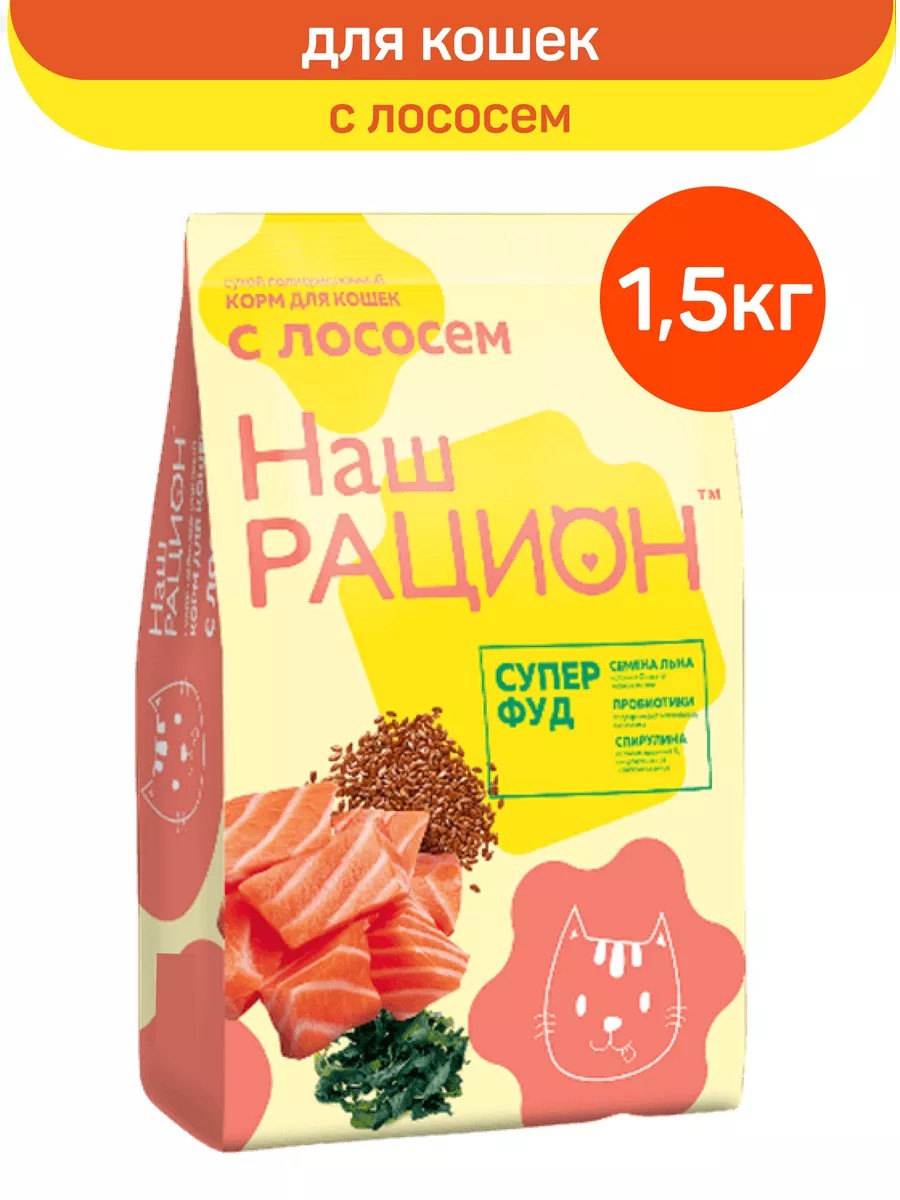 НАШ РАЦИОН Сухой корм для кошек, с лососем, 1,5кг