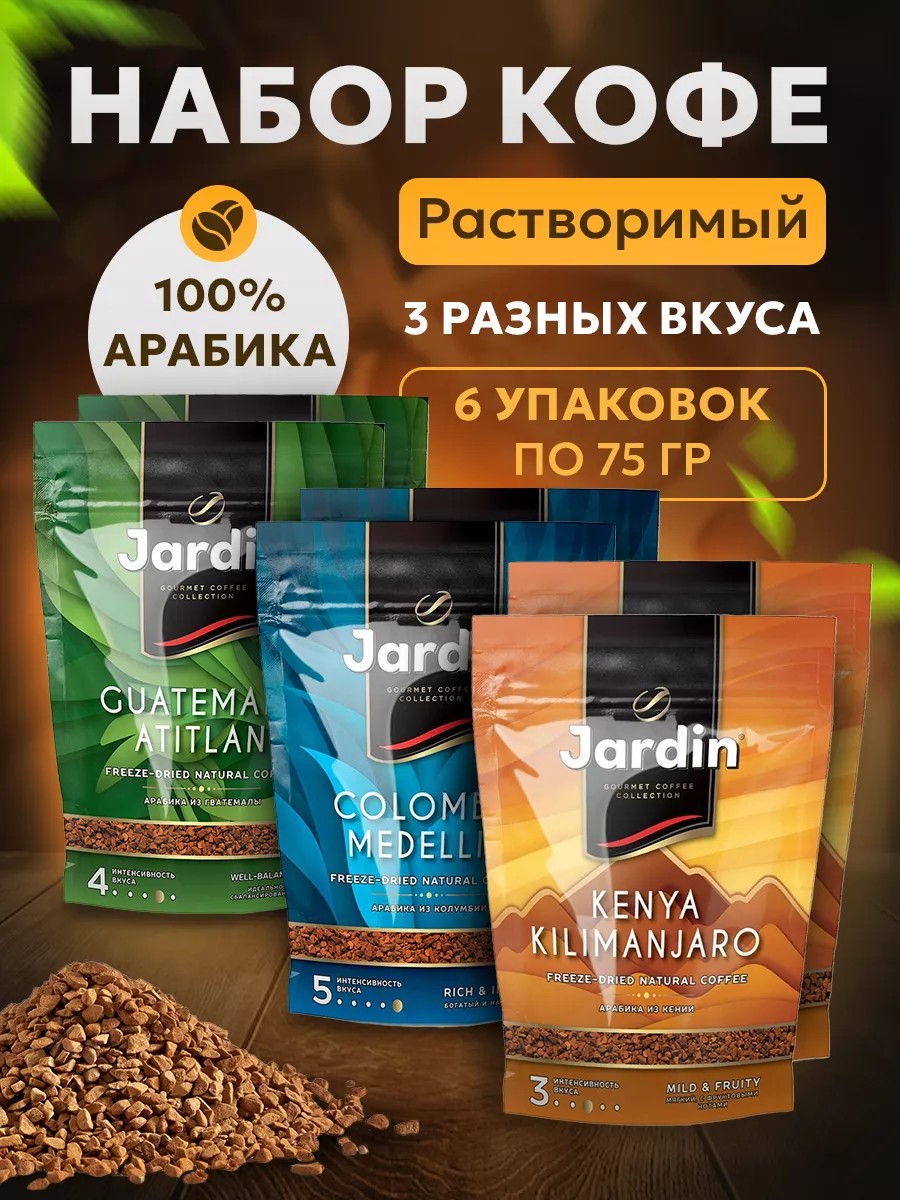 Наш Эталон Набор растворимого кофе Жардин Jardin 6 шт по 75гр