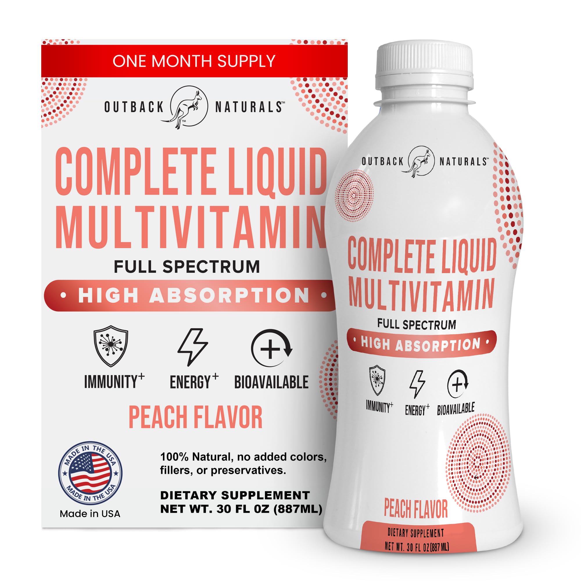 Outback Naturals Complete Liquid Multivitamin High Absorption Blend of Vitamins Minerals Amino acids probiotics & superfoods for Immune Energy Joint Health & More. No Sugar Added 30 Servings