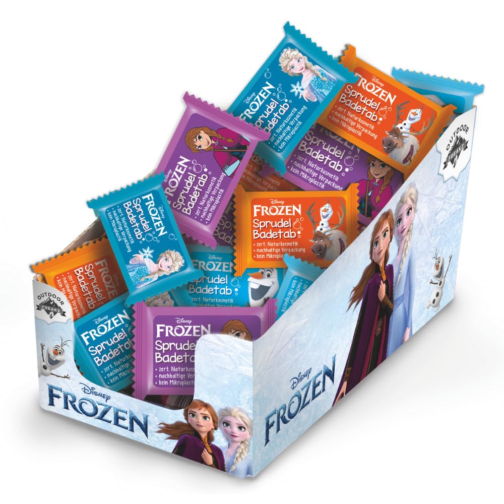 Outdoor Freakz, DermaTest Lot de 24 tablettes de bain pour enfants Frozen Cosmétiques naturels Emballage en papier innovant