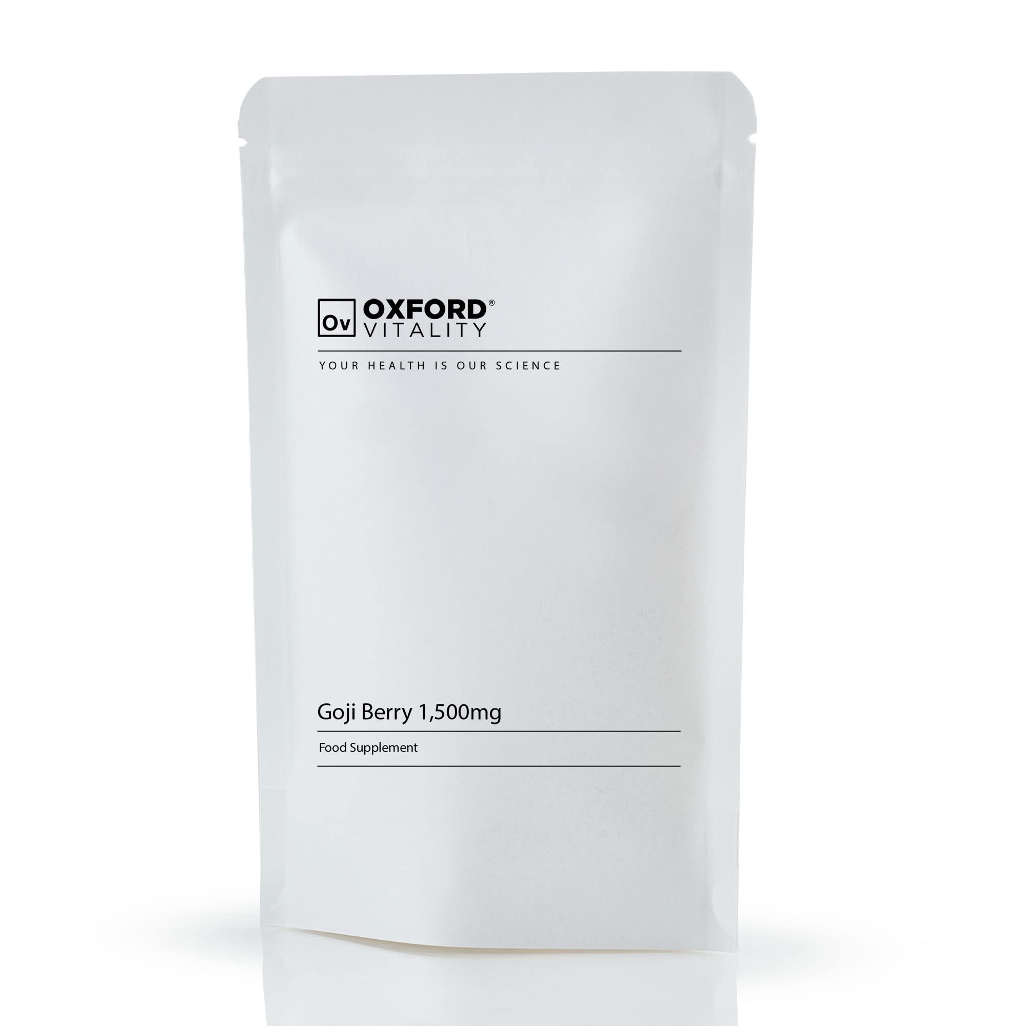Goji berries are sometimes called wolfberries. They are a fruit native to China. The fruit comes from the Lycium Barbarum shrub and is highly valued by traditional naturopaths. Wolfberries have been known as a food in China for centuries. Unfortunately, they have a very delicate structure and are very difficult to ship internationally as they often arrive damaged. Outside of China, they have proven difficult to use as food. They are often consumed dried or as juice. Oxford Vitality Goji Berry Tablets are available in two different strengths: 1500 mg and our extra strength 3000 mg. All Oxford Vitality Goji Berry Tablets are manufactured by our team of experts here in the UK, meeting all trade standards, UK legal requirements, and Food Standards Agency requirements. All packs come with a full list of ingredients, a best before date, and a batch number. Traceability is guaranteed. Our goji berry contains no: artificial colors, flavors, sweeteners, preservatives, added sugar, salt, additives, milk, lactose, soy, or gluten. If you have any questions about our goji berry tablets or any other product, please contact us. INDICATIONS Keep out of the sight and reach of children. If you are pregnant or breastfeeding, please consult your doctor before use. Not suitable for persons under 18 years of age. Stop taking and consult a doctor if you experience any side effects. This product should not be used as a substitute for a varied and balanced diet and a healthy lifestyle. Do not exceed the stated dose. INGREDIENTS Goji berry extract, dicalcium phosphate, microcrystalline cellulose, magnesium stearate. DIRECTIONS As a dietary supplement for adults, take 2 tablets up to 3 times daily, preferably with meals, or as directed by a healthcare professional. Do not exceed the stated dose. Do not use if the seal is broken. DISCLAIMER This product is not intended to diagnose, treat, cure, or prevent any disease or illness. If in doubt, please consult a physician. See moreAll Oxford Vitality Goji Berry tablets are manufactured in the UK by our team of experts. Available in packs of 30, 60, 120, 240, 500, or 1000 tablets. We offer two strengths: 1500 mg and 3000 mg. Wolfberries have been used as food in China for centuries. The goji berry, sometimes called wolf berry, is a fruit that originates from China.Oxford Vitality – Goji Berry Comprimés 1500 mg 240DESCRIPTION DU PRODUIT DESCRIPTION DU PRODUIT La baie de goji est parfois appelée baie de loup. C'est un fruit originaire de Chine. Le fruit provient de l'arbuste Lycium Barbarum et est très apprécié par les naturopathes traditionnels. La baies de loup est connue comme aliment en Chine depuis des siècles. Malheureusement, il a une structure très délicate et il est très difficile de l'envoyer à l'étranger car il arrive souvent endommagé. En dehors de la Chine, il s'est avéré difficile de les utiliser comme nourriture. Il est souvent utilisé sous forme séchée ou comme jus. Les comprimés Oxford Vitality Goji Berry sont disponibles en deux épaisseurs différentes. 1 500 mg et notre extra fort 3 000 mg. Tous les comprimés de baies de Goji Oxford Vitality sont fabriqués par notre équipe d'experts ici au Royaume-Uni, répondent à toutes les normes commerciales, aux exigences légales du Royaume-Uni et aux exigences de l'Agence des normes alimentaires. Tous les paquets sont livrés avec une liste complète des composants, une date de consommation et un numéro de lot. Traçage. Notre baie de goji ne contient pas : couleurs arômes artificiels édulcorants conservateurs sucre ajouté sel additif lait lactose soya gluten Si vous avez des questions sur nos comprimés de baies de goji ou tout autre produit, veuillez nous contacter. INDICATIONS Conserver hors de la vue et de la portée des enfants. Si vous êtes enceinte ou que vous allaitez, veuillez consulter votre médecin avant utilisation. Ne convient pas aux personnes de moins de 18 ans. Arrêtez de le prendre et consultez un médecin en cas d'effets secondaires. Ce produit ne doit pas être utilisé comme substitut à une alimentation variée et équilibrée et à un mode de vie sain. Ne pas dépasser la dose indiquée. INGRÉDIENTS Extrait de baie de goji, phosphate di-calcique, cellulose microcristalline, stéarate de magnésium. MODE D'EMPLOI En tant que complément alimentaire pour adultes, prenez 2 comprimés jusqu'à 3 fois par jour, de préférence avec les repas, ou selon les instructions d'un professionnel de santé. Ne pas dépasser la dose indiquée. Ne pas utiliser si le sceau est cassé. CLAUSE DE NON-GARANTIE Ce produit n'est pas destiné à diagnostiquer, traiter, guérir ou prévenir une maladie ou une maladie. En cas de doute, veuillez consulter un médecin. Voir plusToutes les tablettes Oxford Vitality Goji Berry sont fabriquées au Royaume-Uni par notre équipe d'experts. Disponible en paquets de 30, 60, 120, 240, 500 ou 1000 comprimés. Nous proposons deux épaisseurs du produit : 1 500 mg et 3 000 mg. La baies de loup est utilisée comme aliment en Chine depuis des siècles. La baie de goji, parfois appelée baies de loup, est un fruit qui provient de Chine.