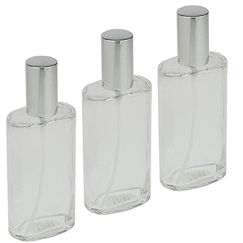Ovaler Zerstäuber, Kosmetex Glas Flakon für Parfüm, Gesichtswasser, leer mit Zerstäuber, 100ml, 3x Silber