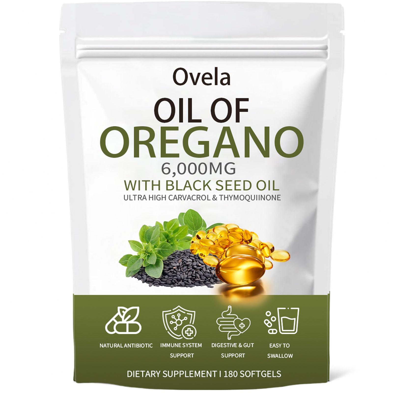 Ovela Oil of Oregano with Black Seed Oil Oil of Oregano Softgels 6000mg Pure & Natural Supplement Immune Support | Improving Gut Health | Boosts Energy Non-GMO Gluten Free (1)