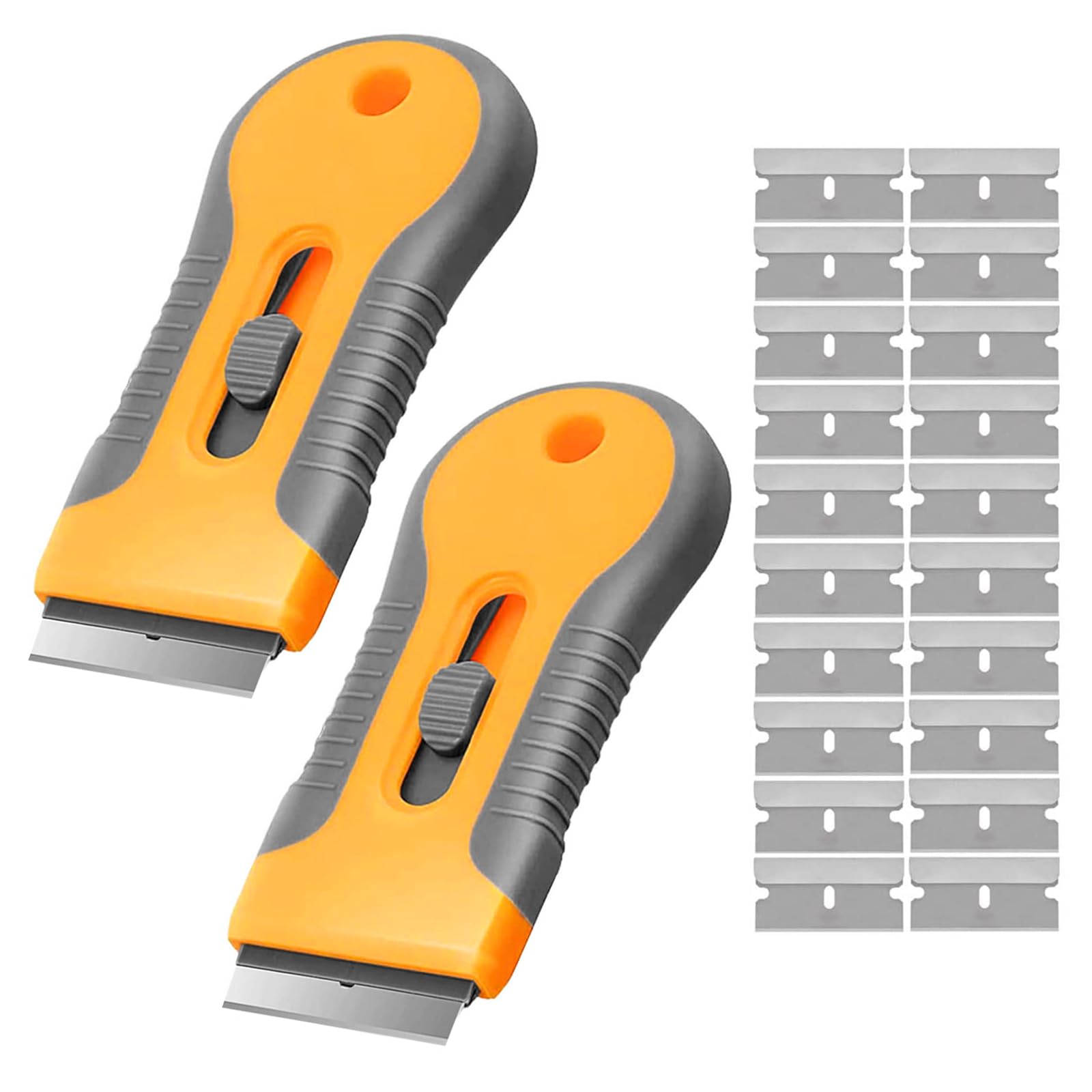 Glass hob oven cleaning tool with 2pcs tools and 20pcs replacements, your ultimate solution for cleaning ceramic hobs, glass ovens, windows, paint, and more. ?Stainless Steel Slice?The slice is made of high-density stainless steel, thickened and widened, with beautiful appearance and durability. ?Flexible Buttons?The button is divided into three positions: top position, middle position, and bottom position, which flexibly controls the entry and exit of the slice. ?360 Degree Cleaning?Scientific angle design, effortless and clean removal, allowing for easy fitting of the working surface and 360 degree cleaning without dead corners. ?TPR Curved Handle?The tool's ergonomic handle design provides a comfortable grip, making the cleaning process effortless and convenient. Blade Replacement: 1. Check tool with slice that it is cooled before using 2. Make sure the slice is facing away while holding 3. Find the slice release buttons 4. To unlock the slice, depress the release button. It may take slight pressure to release 5. Remove the old slice from the cleaning tool & dispose of it properly 6. Slide the new slice into the slot where the old slice was located, secure it firmly 7. Release the button to lock the new slice in place 8. To test the newly installed slice, scrape an area of your stove top with ceramic hob cleaner for glass hobs non scratch.SpecificationMaterial: plastic, stainless steel Dimensions: 12.1 x 7.9 x 2.3 cmPackage: 2 x Cleaning Tool, 20 x Stainless Steel Replacements Multifunctional: Glass hob oven cleaning, wall cleaning, shoveling outdoor advertising, car film, shoveling caulking agent, shoveling glass glue, and glass stickers etc.?Wide Application?Our tools are suitable for removing debris, decals, signs, glue, stickers, adhesives, labels, grease and painted glass, glass ceramics, ceramic tiles, household appliances, metal, windows, doors, stove surface,oven glass and other surfaces. ?Easy to Use?The tools safely removes burned on deposits from your cooktop without scratching. The ceramic hob cleaning tool is designed to provide the perfect angle for effective cooktop cleaning and allows for the removal of large, crusty areas of spilled food and stains. ?Ergonomic Design Stable?The grips designed with ergonomic line that makes you have comfortable control. Small enough to carry in pocket or toolbox, quick, easy and safe, nice for household cleanliness to save your much time and effort. ?Retractable and Safe?The oven cleaner is design with a retractable head. By pushing the gray button, you can not only change the head quickly and easily, but also hide the head to keep safe. The card slot firmly fixes the slice during use, making it difficult to slide out or retract. Hangable tail of the tool save space. ?High Quality Tool?The cleaning tool is made of premium plastic and tough polypropylene handle with TPR comfort sleeve, which is lightweight for easy use and durable for lasting long time, plus 20 spare stainless steel replacment slices, which are rustproof and sharp. The tool helps clean your ceramic hob faster, without any scratching.